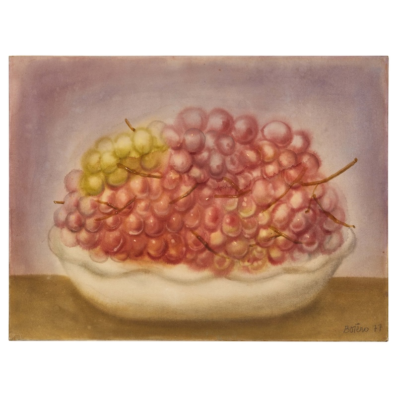 Fernardo Botero, Natura morta con uva, 1977 tecnica mista su cartoncino telato cm 46×61,5