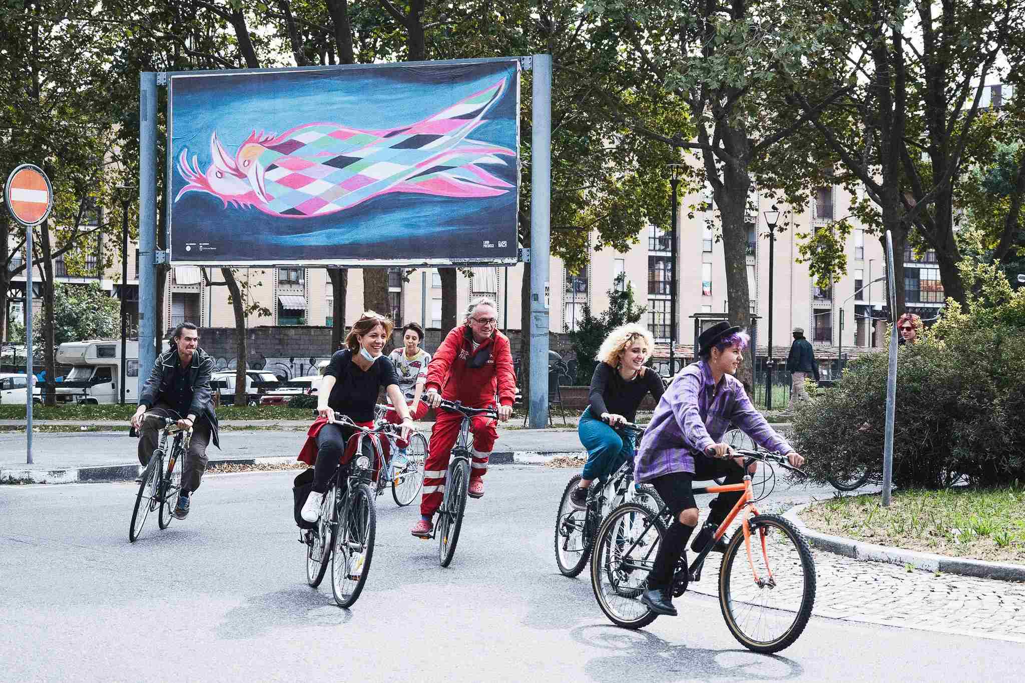 Sullo sfondo Luigi Presicce, “Arlecchini del Paradiso” per Opera Viva Barriera di Milano, il Manifesto, ed. 2020