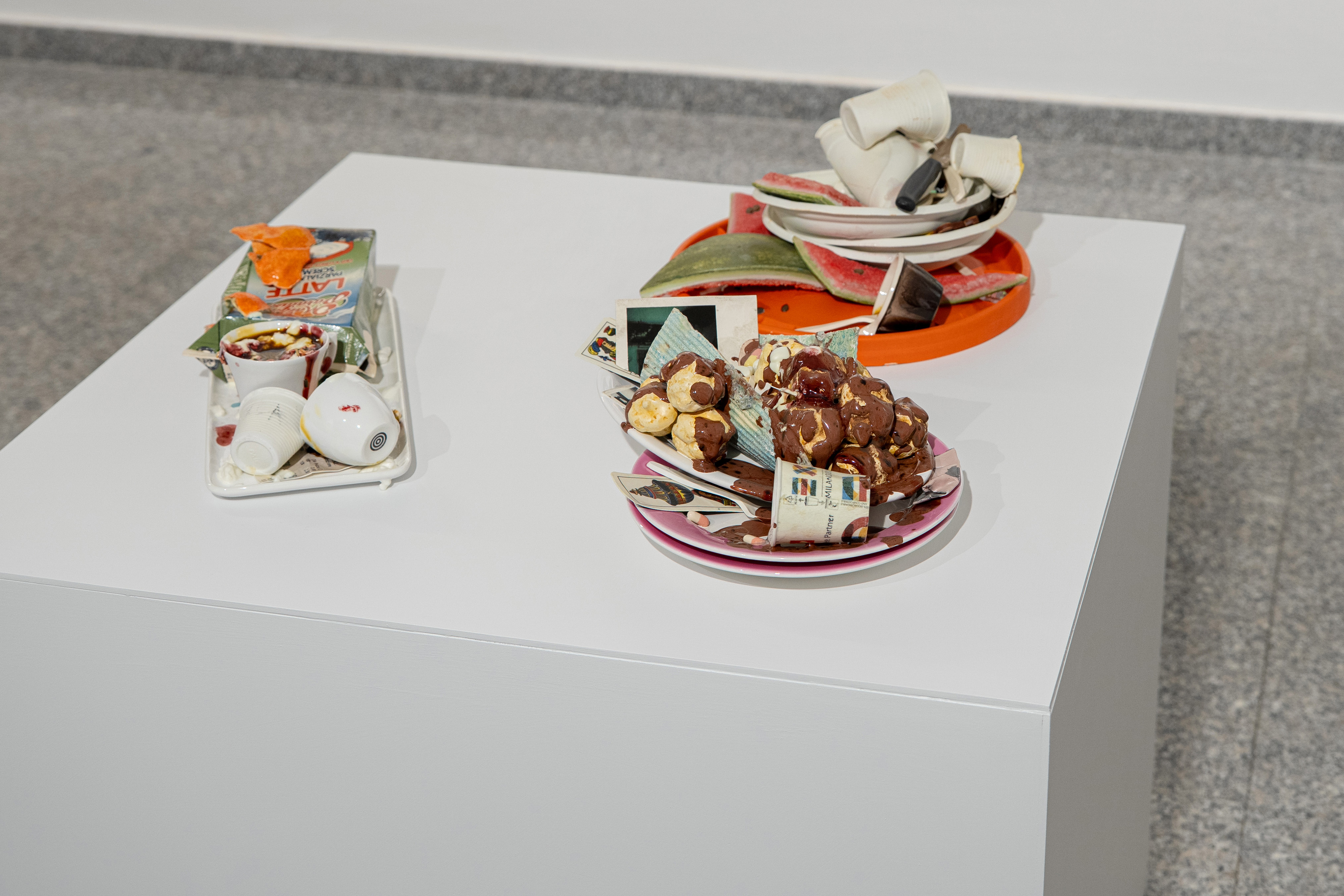 Nelle sculture di Bertozzi & Casoni il quotidiano si offre come residuo, scarto, traccia del consumo. Stoviglie usa e getta, resti alimentari, frammenti domestici vengono restituiti dalla ceramica con una precisione estrema, trasformando l’effimero in permanenza e il rifiuto in una sorta di reliquia del presente. La loro ricerca produce un cortocircuito sottile tra splendore tecnico e dissipazione materiale, tra seduzione della forma e fragilità delle cose.