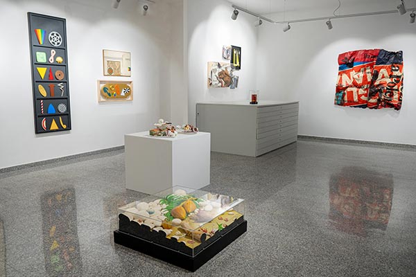 Il lavoro di Lucio Del Pezzo introduce una diversa qualità del rapporto con l’oggetto: più mentale, più calibrata, più enigmatica. Simboli, forme geometriche, memorie iconiche e frammenti del quotidiano si organizzano in composizioni rigorose, dove la precisione costruttiva si apre a una vibrazione ironica e sospesa. L’opera diventa così un dispositivo di relazione, un alfabeto visivo in cui l’oggetto perde la propria funzione e acquista una nuova intensità simbolica.
