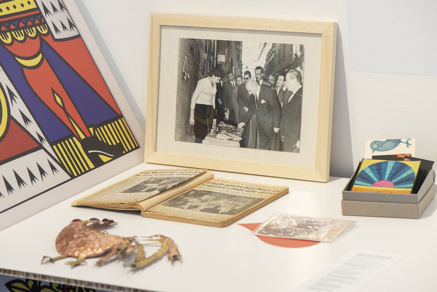 Ripercorrendo i momenti più importanti della sua carriera, in mostra sono documentate le più importanti collaborazioni con case editrici per l’infanzia e del mondo scientifico. Come con Emme Edizioni da cui sono nati volumi che hanno segnato la storia del genere quali La Barca, una sorta di silent book ante litteram, o I Libri Circolari, le cui tavole originali, come anche quelle dei giochi apparsi su il «Corriere dei Piccoli» o la «Pimpa», mai uscite dallo studio e biblioteca di Pallottino a Bologna, sono esposte qui per la prima volta. Esposti anche i dischi che raccontano della sua attività di paroliera nel mondo della musica leggera, in particolare della sua collaborazione con Lucio Dalla, infine i volumi da lei pubblicati, dai Cento anni di illustratori del 1978 al recente Le Figure per dirlo. Storia delle illustratrici italiane del 2020, testimoniano la sua attività di studiosa nel campo della storia dell’illustrazione, prima studiosa in assoluto della materia.