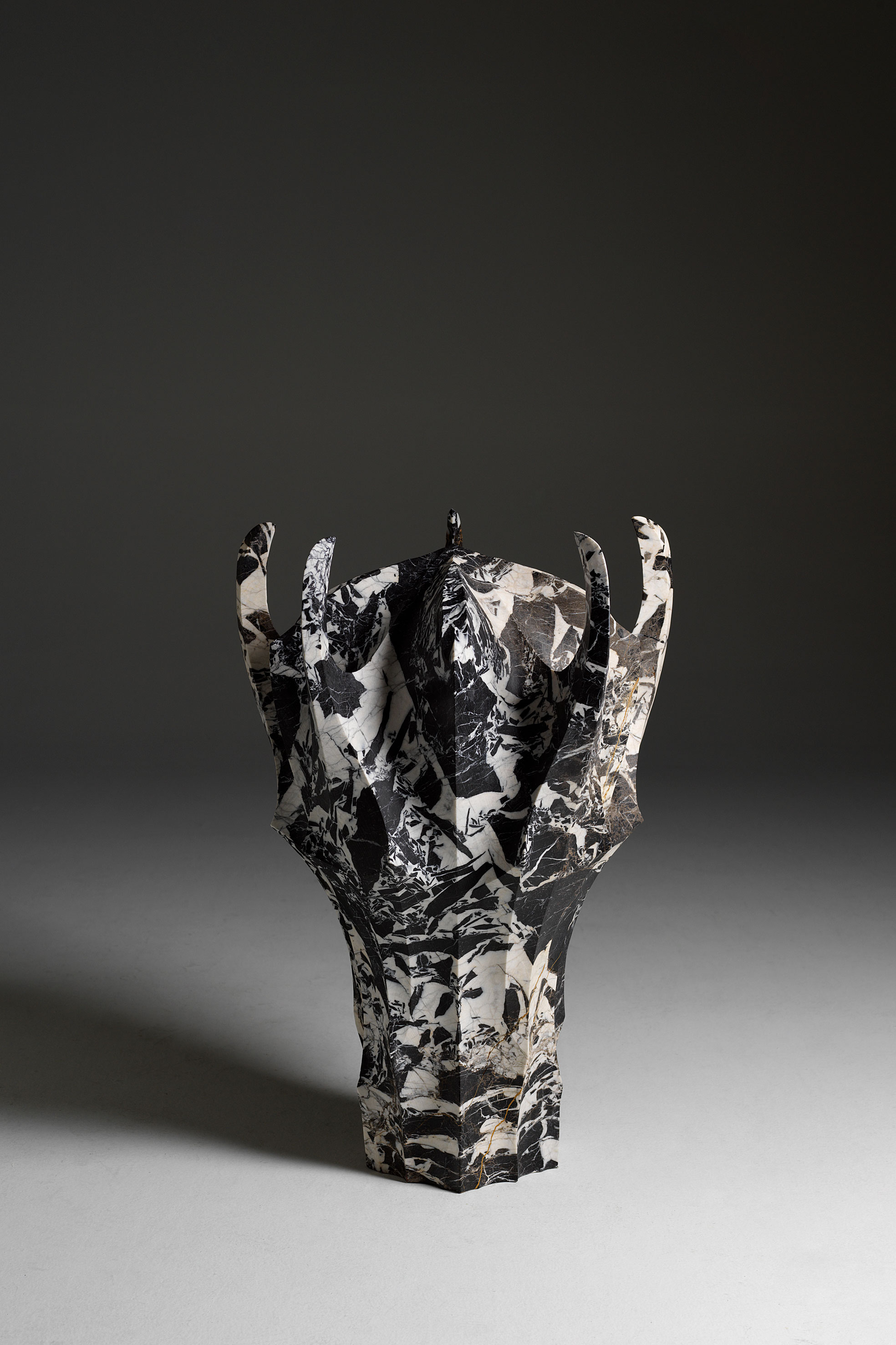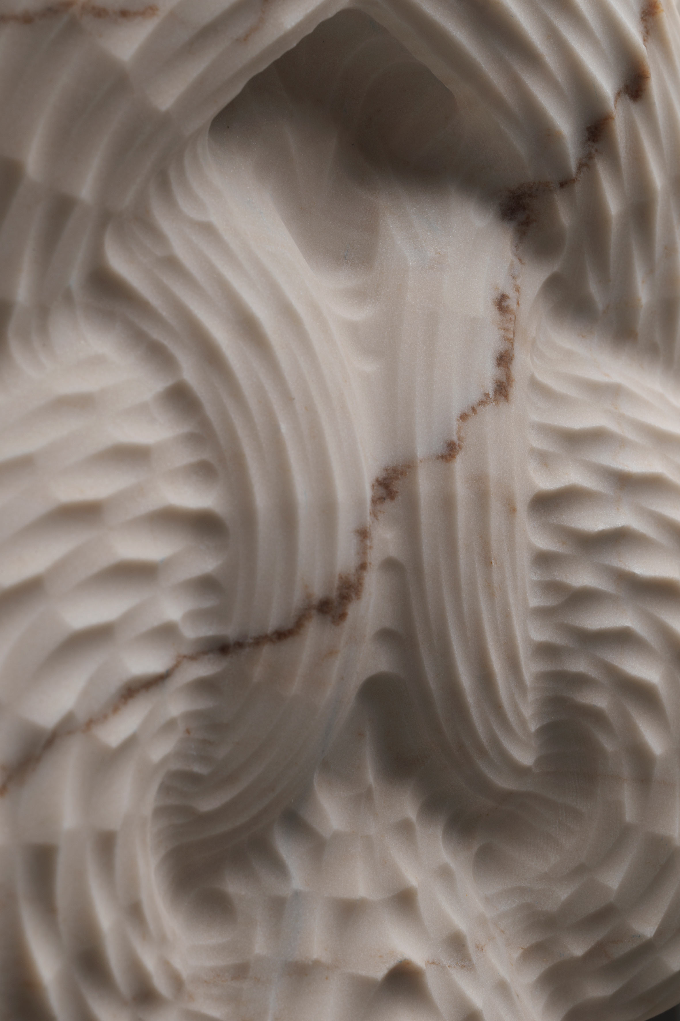 Definizioni che il curatore abbina alle opere di Galiotto per trasferire l’impressionante — perché di stupore e meraviglia si tratta — capacità di progettare la tecnologia per modellare la materia. Quella messa a punto da Galiotto, infatti, è una pratica complessa che forgia gli strumenti chiamati a modellare la pietra naturale. Forzandola, levigandola, incidendola a tal punto da ottenere spessori talmente sottili da influenzare la percezione della luce e del colore, innervando di vita la pietra naturale.