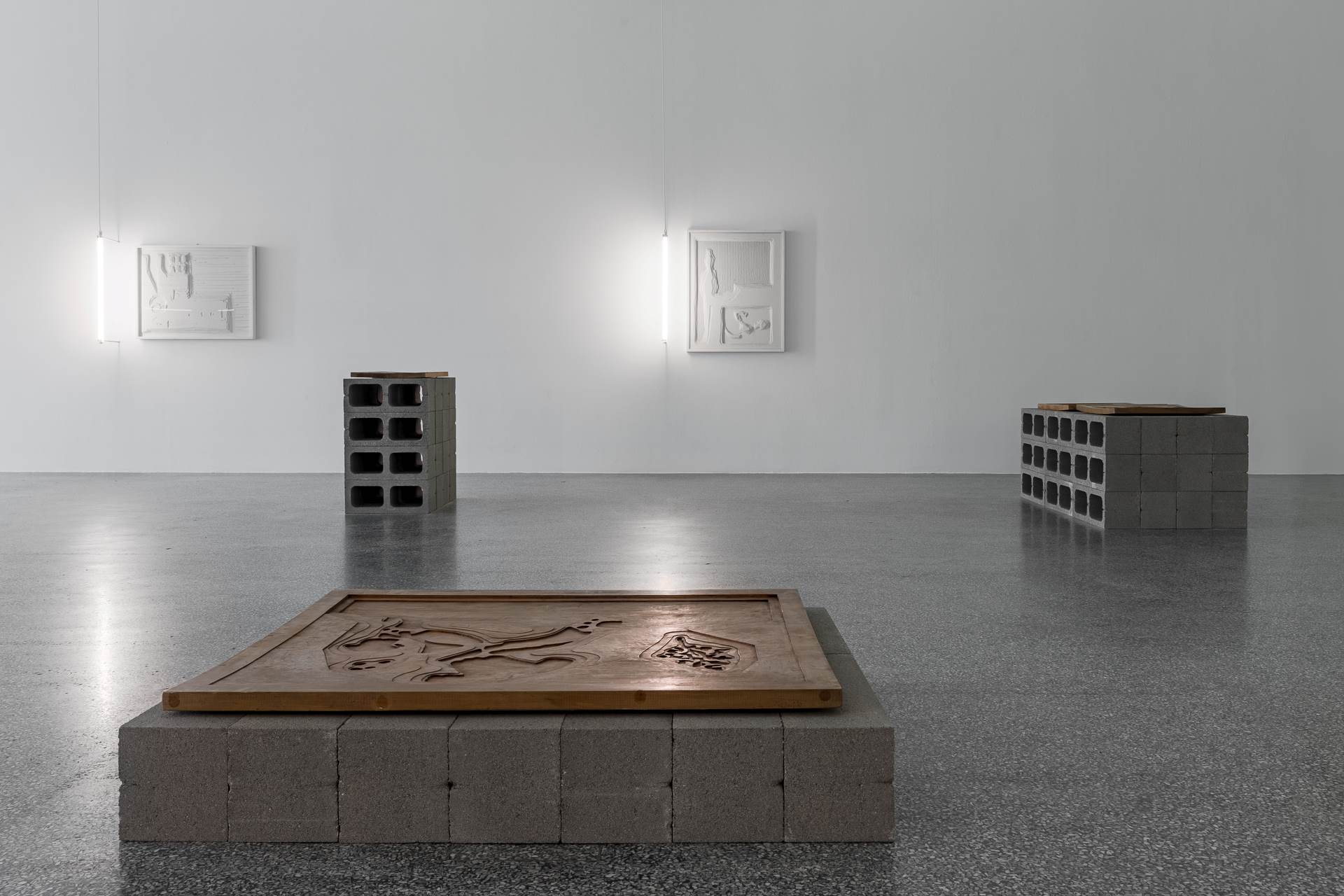 - Ezio Gribaudo, The Weight of the Concrete, in a scenography by Davide Stucchi at Museion, 2024. Courtesy: Archivio Gribaudo, Davide Stucchi and Museion. Photo: Luca Guadagnini