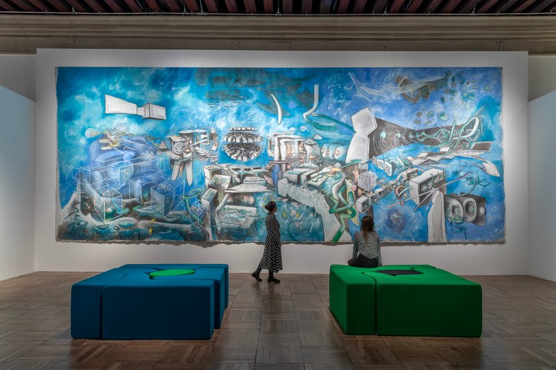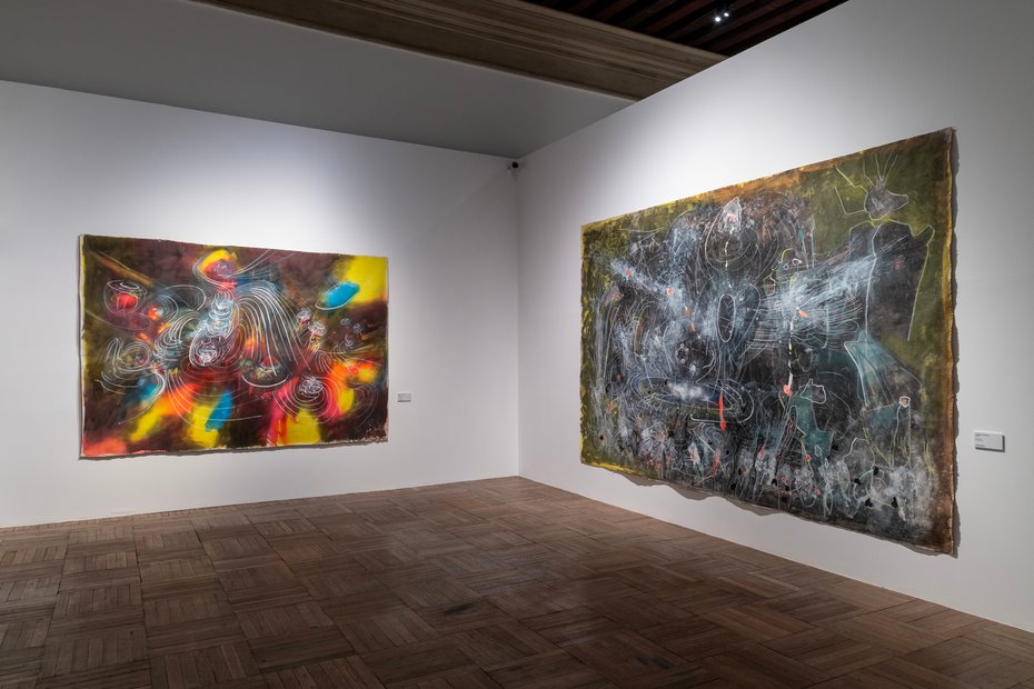 Matta è partecipe del mondo della fantascienza e precursore un’estetica, che lui amava definire “da Leonardo da Vinci alla NASA”, dove si mescolano le atmosfere siderali dei videogiochi e quelle della Street art. Per questo l’esposizione apre con l’opera monumentale Coïgitum (1972) che unisce l’immaginario surrealista alla costruzione architettonica e allo sfondamento non- Euclideo dello spazio.