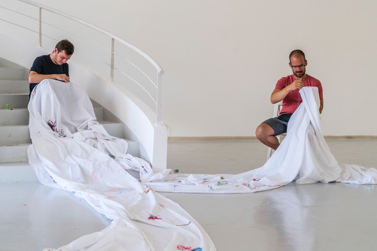 “Da aprile 2017 viaggio attraversando ogni paese dell’Unione Europea portando con me un drappo di cotone bianco lungo circa 30 metri. Chiedo alle persone di essere coinvolte nella creazione di un ricamo collettivo invitandole ad esprimersi senza limiti e confini, così come l’Unione Europea dovrebbe essere” afferma l’artista. Questo Anonimato è Sovversivo nasce dal desiderio di abbattere le diversità sociali e politiche attraverso la partecipazione diretta del pubblico che, nell’azione del ricamo, trova la forza di esistere all’interno di una comunità eterogenea che vive nell’unione delle differenze.