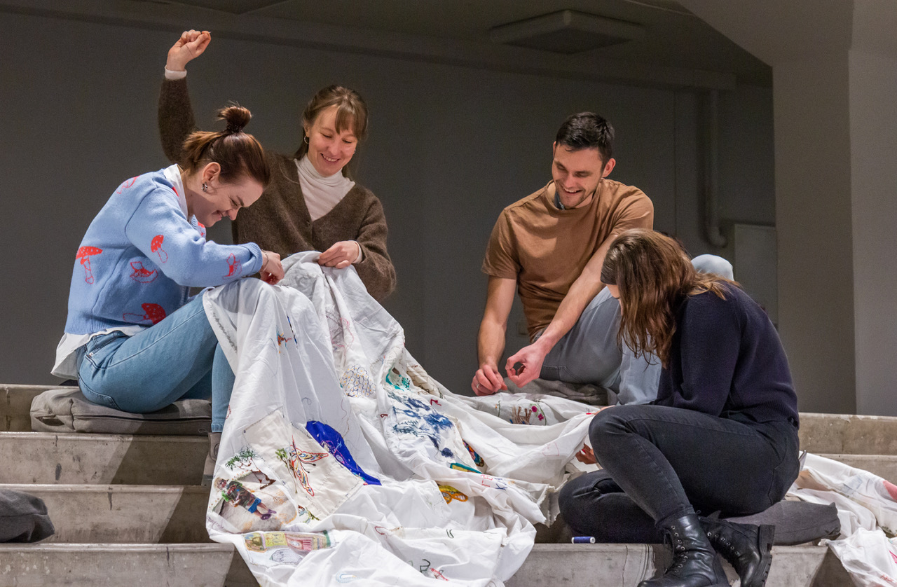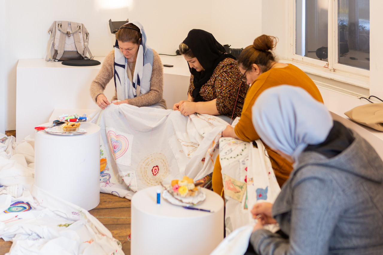L’opera, un drappo ricamato di cotone bianco – della lunghezza 30 metri – ha viaggiato per tutta Europa: in ciascun museo, istituzione, spazio o contesto domestico in cui la performance è stata realizzata, il pubblico è stato invitato a ricamare ciò che desiderava, dando vita a un’opera collettiva capace di racchiudere le storie di moltissimi individui.