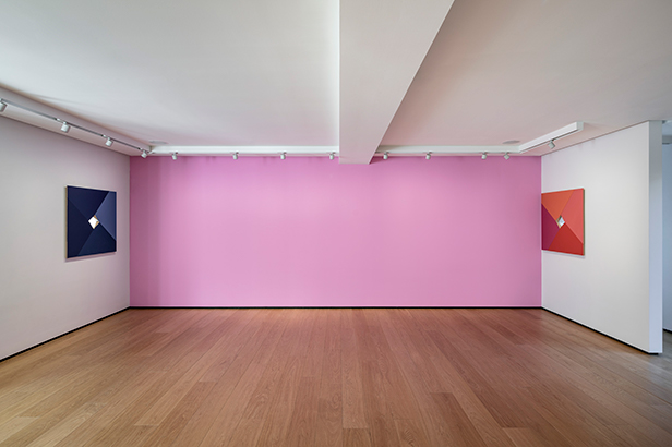 Sfondando metaforicamente e concretamente i confini imposti dagli elementi strutturali della galleria, le opere di Sean Shanahan, derivati della pittura monocroma, abitano fisicamente lo spazio tridimensionale di BUILDING in un allestimento che si pone al limite con l’installazione.