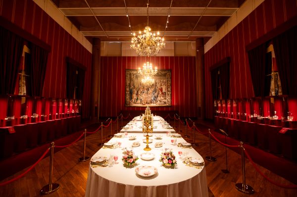 Dal 28 settembre 2023 al 28 gennaio 2024 presso gli spazi del secondo piano delle Sale delle Arti della Reggia sono esposti oltre 200 tra dipinti, arredi da tavola, splendidi servizi di porcellana e d’argento provenienti dalle principali corti italiane che documentano e “raccontano” l’affascinante e curiosa storia dei pranzi di papi, principi e re.