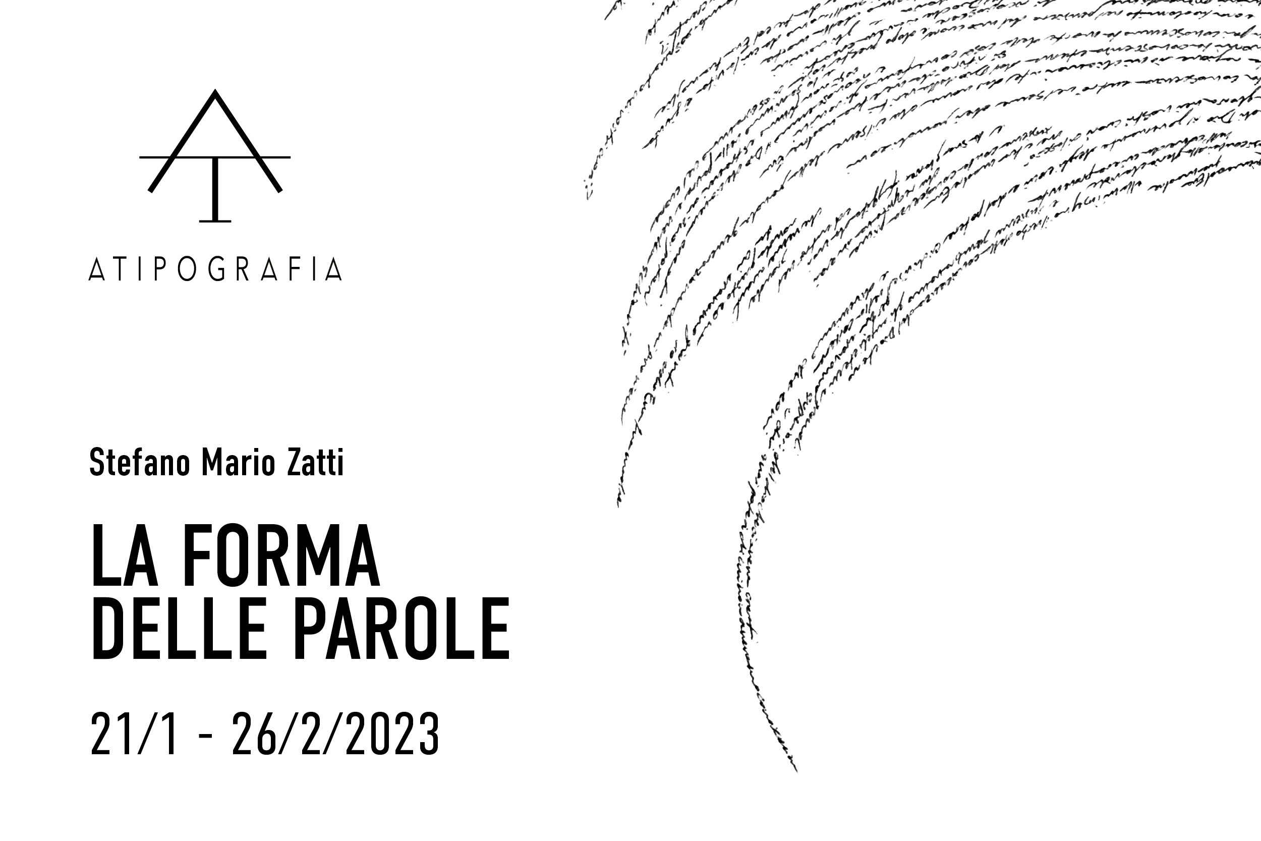 La forma delle parole, a cura di Robert C. Phillips e Matilde Nuzzo, dal 21 gennaio al 26 febbraio 2023 presso Atipografia ad Arzignano, in provincia di Vicenza, esplora parte del percorso artistico di Stefano Mario Zatti proponendo nuove e diverse chiavi di lettura alla sua opera. Da artista di grande potenza rappresentativa, Zatti ha cercato di approfondire e di dare forma visibile a ogni componente della sua interiorità, superando la banalità della sola rappresentazione fattuale della percezione quotidiana, spingendosi oltre le barriere del concettuale e facendosi interprete cosciente, con assoluta integrità e sincerità, di quegli schemi reconditi alla base di ogni rappresentazione artistica.