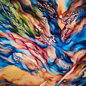 - “Coming back to life” olio su tavola 110x160x4,5 cm di Marjan Fahimi (dettaglio opera)