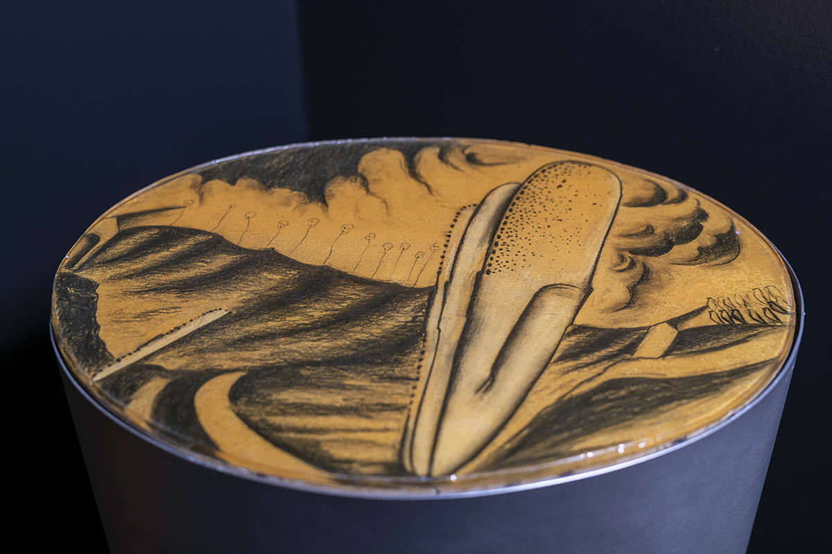 • Enzo Cucchi, Senza titolo (E 1127), 1989, disegno, resina sintetica e ferro, 27,5x39x110 cm