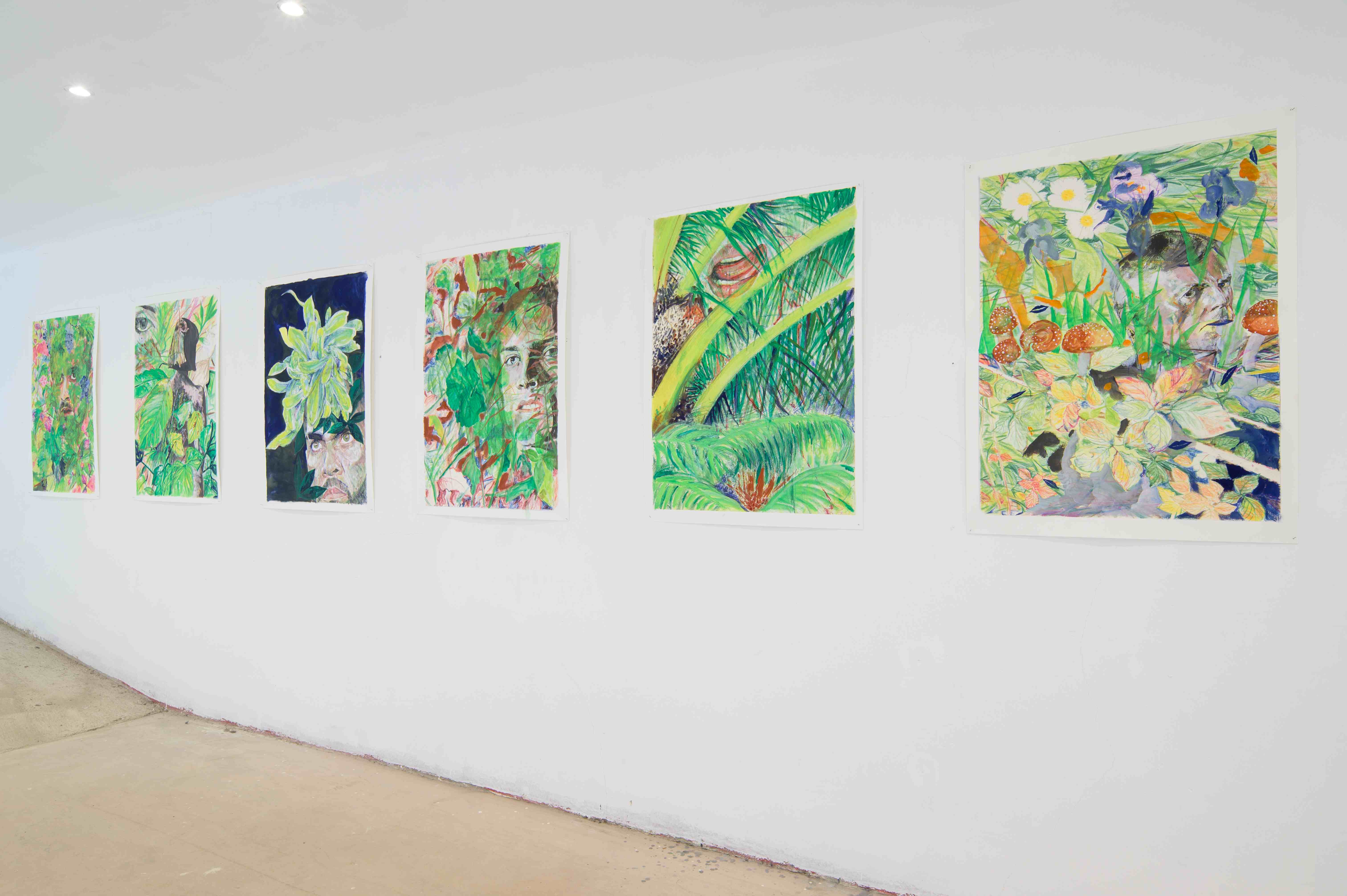 Allo stesso modo, nelle opere di Aldo Dolcetti si ritrova una natura in completa armonia con la figura umana. Una trasfigurazione e ricontestualizzazione di volti noti all’interno di cornici floreali. Le opere su carta sono una rapida ma quantomeno ponderata elaborazione fitomorfica di un tema caro all’artista legato all’identità. Quell’identità umana che ricorre nei suoi lavori inserendosi a volte prepotentemente all’interno di tali contesti floreali. La presenza umana si fa a tratti più marcata mostrando i propri lineamenti, la propria memoria perché su quei volti è segnata la storia di ciascuno. Le nature floreali nei disegni di Dolcetti possono essere interpretate anche come le radici di quei volti ai quali è associata una memoria collettiva, che si rivelano attraverso il disegno dell’artista.