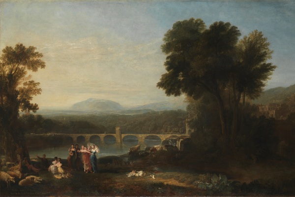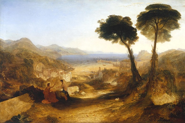 Tuttavia Turner, dopo due viaggi in Italia compiuti nel 1819 e nel 1828, e influenzato da Richard Wilson, artista britannico che nella seconda metà del Settecento visse per un lungo periodo tra Roma e Napoli, iniziò a scegliere i paesaggi italiani (reali o generici) come sfondo per i suoi soggetti mitologici scegliendo colori più intensi e ricchi effetti di atmosfera.