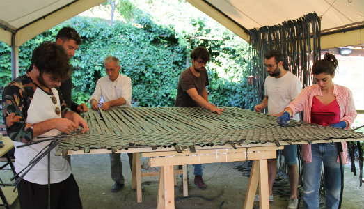 La stagione delle residenze è cominciata a luglio, con Una delle storie, progetto di Marisa Albanese sull’integrazione della comunità africana nel territorio sannita, ed è proseguita con Il libro della storia, un lavoro di Silvia Capiluppi sul tema delle radici. L’opera di Giliberti, Penelope, utilizza i tubi per l’irrigazione come occasione per una riflessione sul tempo e sul rapporto tra utile e bello, moralmente apprezzabile e praticamente realizzabile. A ogni cambio di coltura si produce in campagna una grande accumulazione di residui plastici che Giliberti ha pazientemente intessuto fino a formare una trama, montata su pali di castagno per diventare un passaggio in ombra. Scamarcio e Peruffo hanno realizzato le Camere Ecoiche registrando il suono di un’antica sorgente d’acqua che attraversa le terre del TANA. Il suono, elaborato digitalmente è stato poi diffuso in un’installazione composta da damigiane di vino.