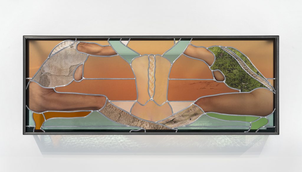 Glass, antique glass, water glass, glass transfer, lead, tin, steel 130 x 50 cm