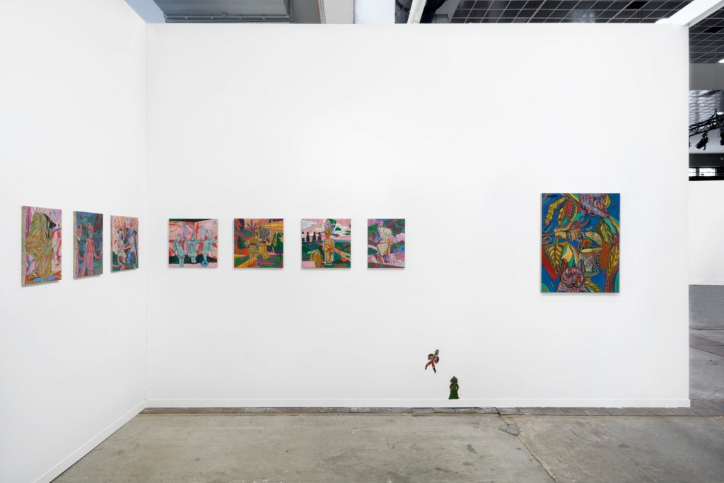 Chiudiamo la nostra ricognizione “nostrana” con un’altra protagonista della Discovery Section: ArtNoble Gallery, nel booth 6D-04, presenta Rainbowmagicland, una nuova serie inedita dell’artista italo-brasiliana Giulia Mangoni (classe 1991). «Rainbowmagicland è uno spazio di transizione, ermetico», lo definiscono dalla galleria, «una zona oscura di trasformazione, dove uno dei progetti di ricerca di Mangoni degli ultimi anni trova la sua conclusione naturale, lasciando un fecondo ambiente pittorico che dà vita a un viaggio più personale di rappresentazione familiare». Fino a domenica 27 aprile.