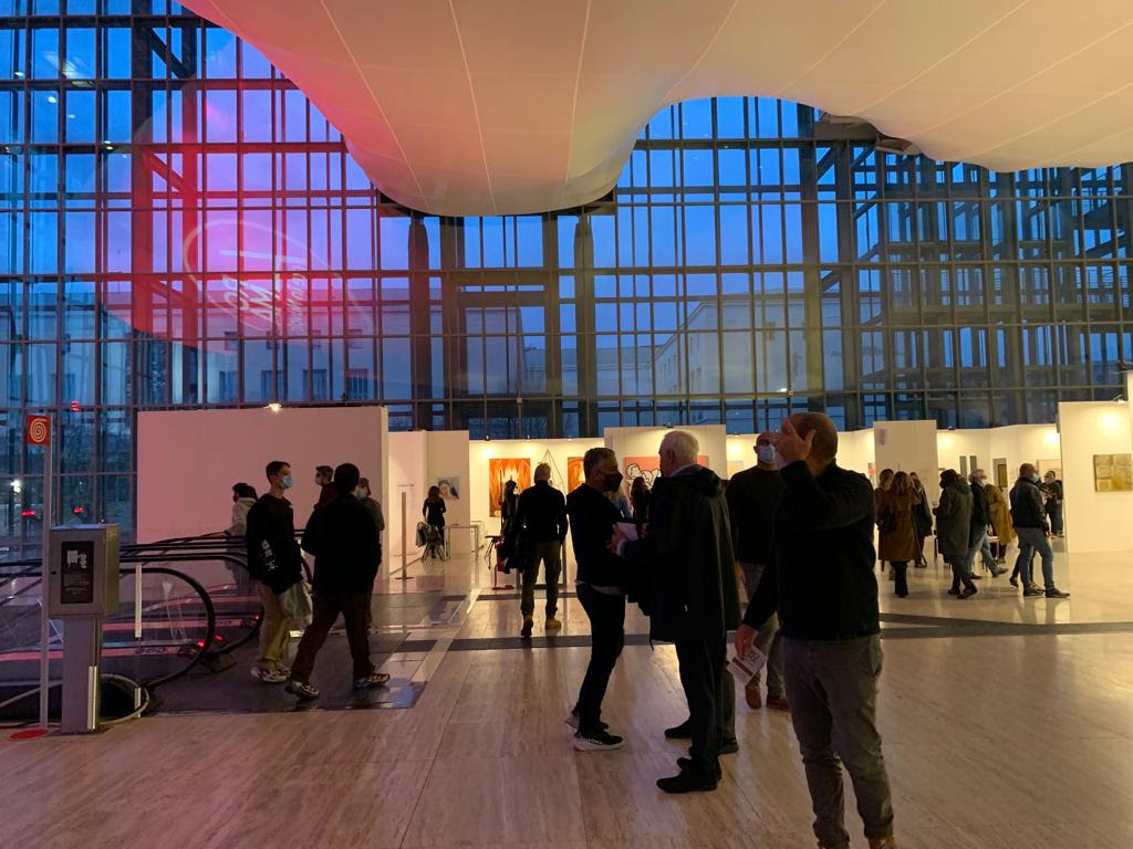 150 espositori in 7mila metri quadrati a firma d’archistar, questi sono i numeri che già sapevamo. E poi ci sono quelli da tirare alla fine, a porte chiuse, che fanno contare 24mila visitatori, di cui 400 collezionisti italiani e stranieri. Insomma, buoni auspici per questa prima edizione di Arte in Nuvola, la nuova fiera internazionale di arte moderna e contemporanea, andata in scena dal 18 al 21 novembre sotto la benevola Nuvola di Massimiliano Fuksas. Ideata e diretta da Alessandro Nicosia, con la direzione artistica di Adriana Polveroni in collaborazione con Valentina Ciarallo, la fiera è nata sotto auspici di dinamicità, con molti progetti speciali a caratterizzare il percorso, e si è sviluppata sfidando una sorte non esattamente propizia, viste le difficoltà, soprattutto nei mesi passati, legate all’evoluzione della pandemia.