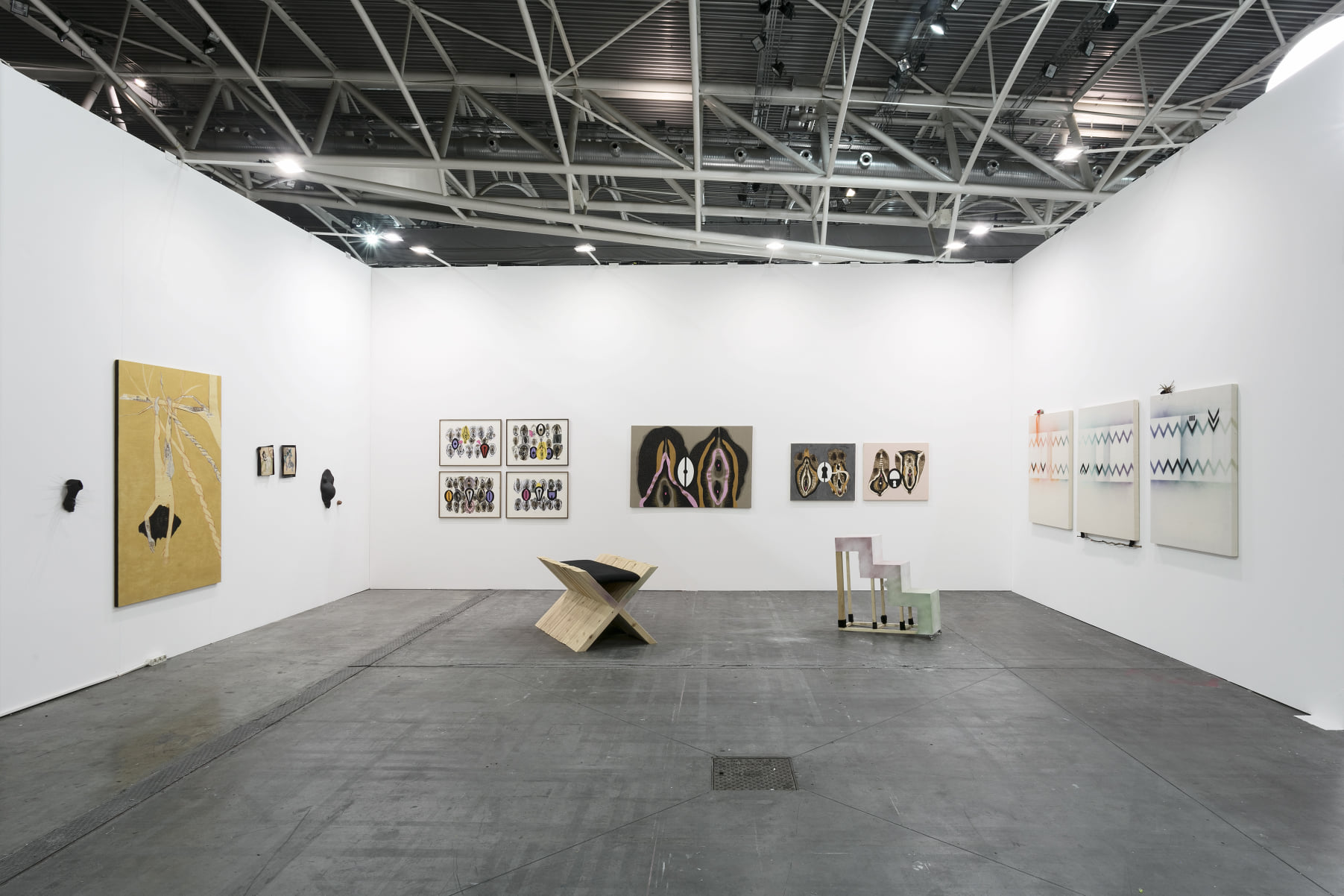 Per la serie “donne necessarie”, invece, indichiamo la galleria Francesco Pantaleone (Palermo/ Milano) con il bello stand che mette in dialogo le opere di Loredana Longo (gli arazzi e i tappeti che riportano frasi di libertà, speranze e desideri pronunciati da grandi leader) e le fotografie di Letizia Battaglia, svelando anche un lavoro a quattro mani realizzato delle artiste. Ma c’è anche GALLLERIAPIÙ di Bologna che, tra le pitture di impronta “femminista” e la ricerca antropologica dedicata ai simboli delle società matrilineari di Gaia Fugazza e Ivana Spinelli, inserisce la serie Vulv’are di Concetto Pozzatti, tutto dedicato all’organo femminile e rimasto inedito fino a pochissimo tempo fa.
