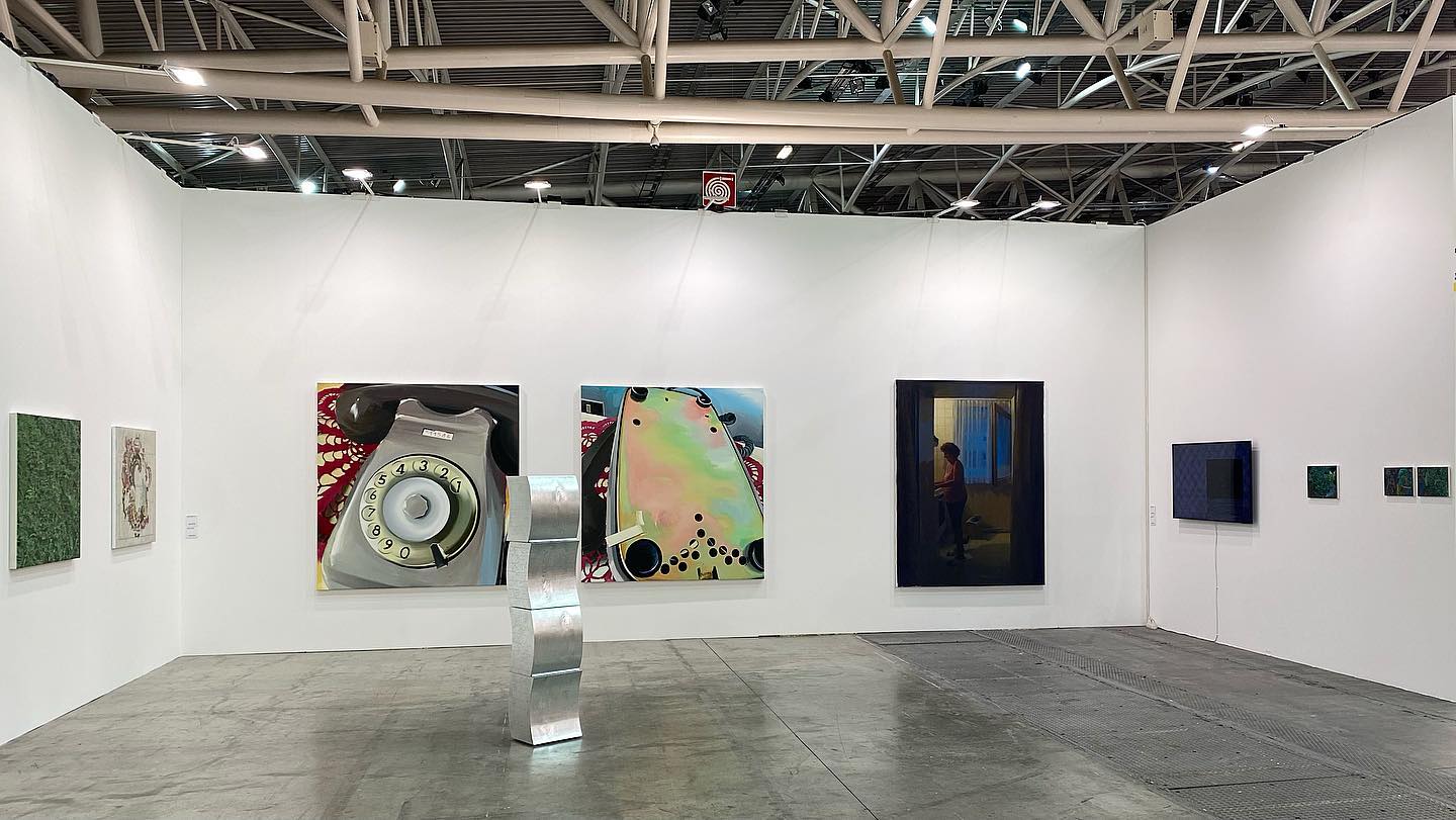 Claudia Comte è invece la regina dello stand di König (Berlino) con una pittura murale infuocata realizzata site specific, che denota – in alcuni casi – il coraggio di alcune gallerie di osare e uscire un po’ dai ranghi del quadro, che del resto anche qui abbonda. Altro caso da segnalare è quello di NOME (Berlino), che porta in scena le ricerche del duo Goldin+Senneby, con una carta da parati che riporta le parole Acid, Money e il nome di Malin Nillson e le opere Secrets of trade e Banca Rotta, composte dai simboli dell’economia e della matematica.