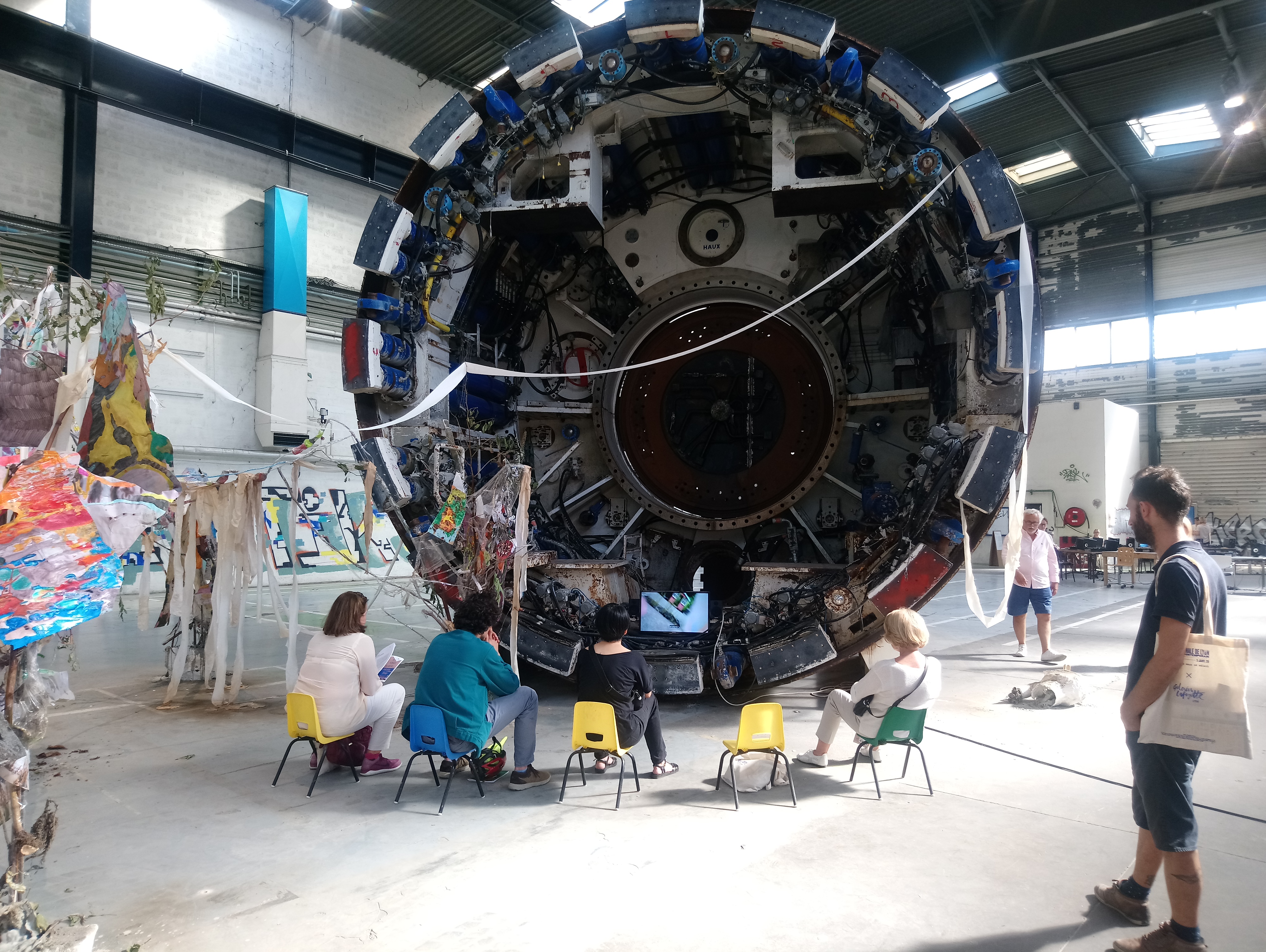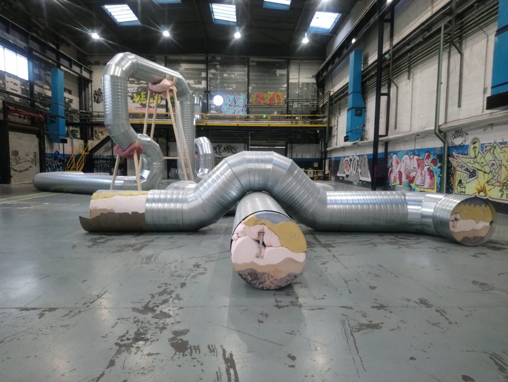 Infatti, oltre il 90% delle opere sono create in situ, nell’immenso volume di 29mila metri quadrati dell’ex fabbrica, in dialogo con la sua storia e il contesto sociale ed economico urbano e rurale. Il collettivo curatoriale, formato da Vittoria Matarrese, Daria de Beauvais, Yoann Gourmel, Hugo Vitrani, Claire Moulène, Adélaïde Blanc e Matthieu Lelièvre, ha scelto per lo più artisti giovani e non sempre noti al grande pubblico, restituendoci così una sorta di mappa sulla creazione emergente, a scala internazionale.