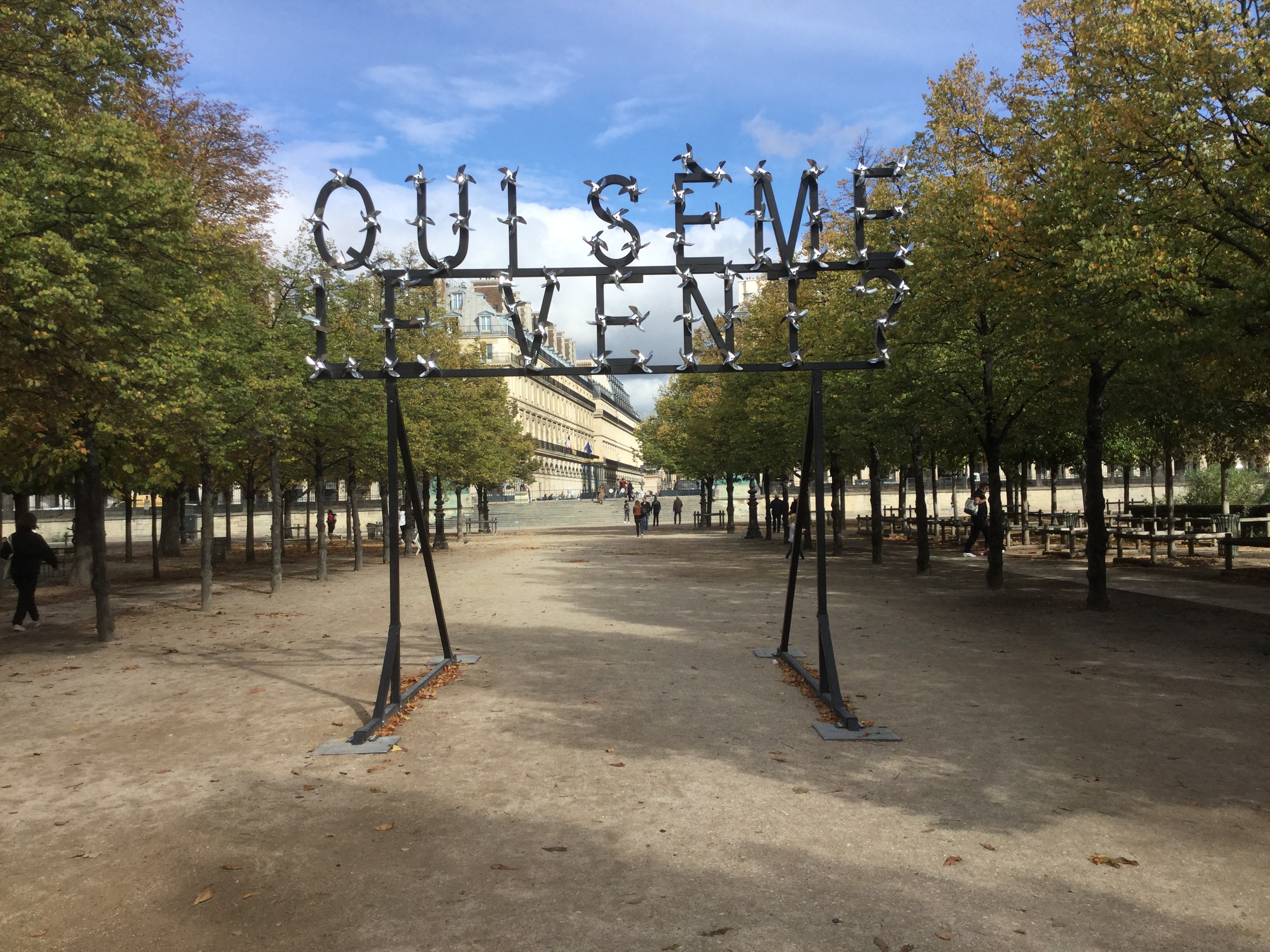 La frase Qui sème le vent di Pierre Ardouvin attraversa, in alto, un viale laterale. Sulla scritta sono appese delle girandole in acciaio dalle dimensioni dei ben noti giocatoli, che si muovono col vento, come il fogliame degli alberi. Su Place Vendôme il vento ha impedito che la scultura gonfiabile dell’artista giapponese novantenne Yakoi Kusama rimanesse in piedi i giorni successivi alla sua inaugurazione. Adesso è a terra ricoperta da un tendone blu di plastica.