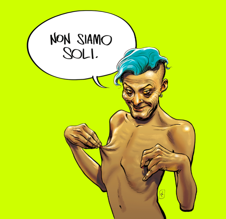 In un momento di grande incertezza, qualcuno resiste: Flashback, la fiera dedicata all’arte tutta, dall’antico al moderno fino al contemporaneo, senza limiti di tempo e di spazio, conferma non solo le date della sua ottava edizione, dal 5 all’8 novembre 2020, con una inedita preview di ben due giorni, il 3 e il 4, ma anche la sede. Perché Flashback si terrà on site, negli spazi reali del Pala Alpitour di Torino e presenta il suo progetto con un’immagine emblematica: una persona dai caratteri indefiniti, in stile comics dal taglio punk, che ci dice: «Non siamo soli». Non è una donna, non è un uomo, non ha età, si rivolge all’osservatore in maniera disturbante e destabilizzante. Insomma, una copertina a tinte forti, firmata da Daniele Caluri, matita del Vernacoliere, dissacrante disegnatore di serie a fumetti iconiche, come Don Zauker e Dylan Dog.