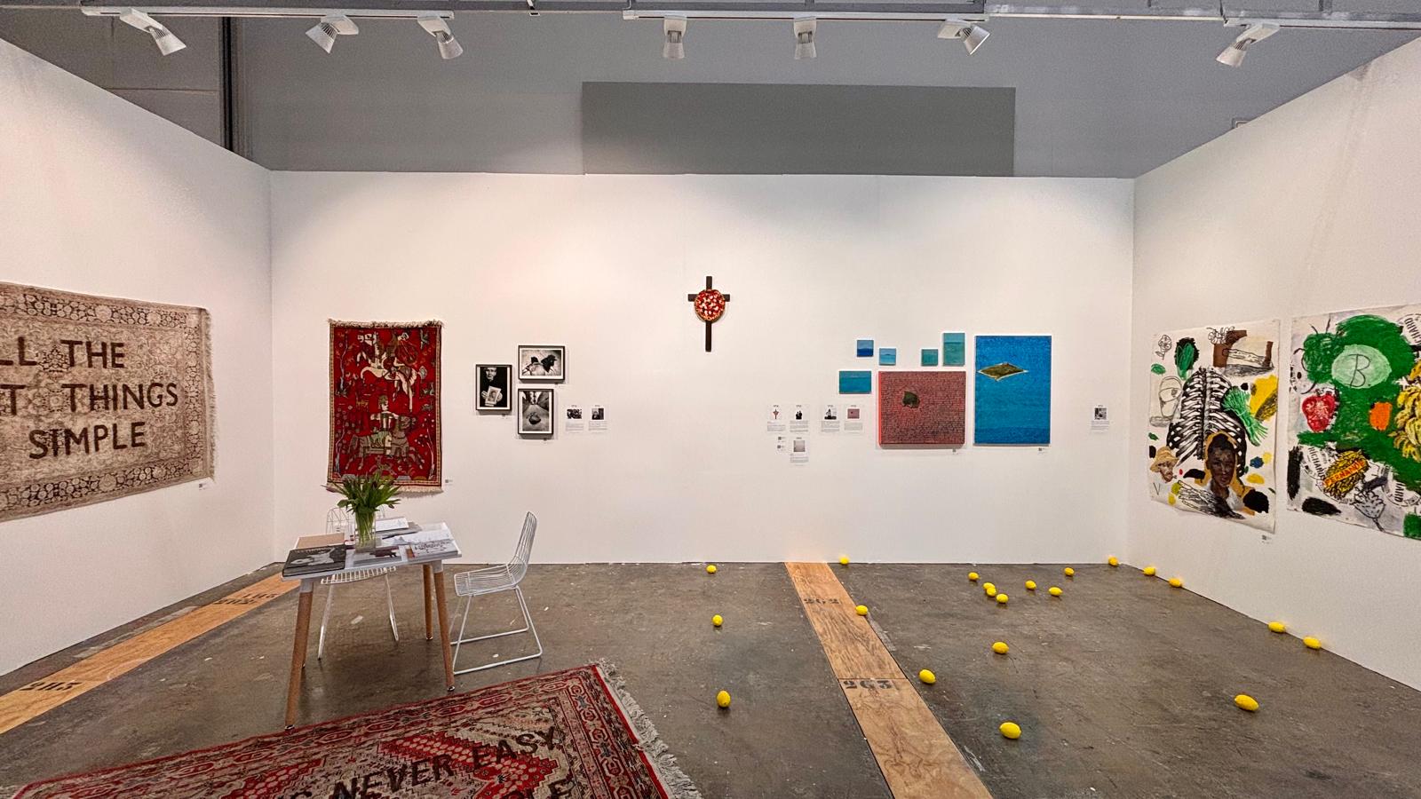 Ancor più nutrita in termini numerici è la proposta di Francesco Pantaleone di Palermo, che dona un racconto dell’identità siciliana connotato da un forte impegno civile. Alcuni celebri scatti di Letizia Battaglia, i tappeti della serie “Carpets” di Loredana Longo, su cui l’artista ritaglia slogan facendo di un elemento legato all’accoglienza e all’ospitalità un campo di battaglia comune, le sculture di Claire Fontaine, che opera un détournement di alcuni elementi della cultura visiva con il duplice fine di decostruire l’autorialità e politicizzare il linguaggio visivo, il ciclo pittorico dedicato all’isola delle femmine di Stefania Galegati e le composizioni di Maïa Régis fatte di immagini apparentemente incongrue, delinenano nello stand della galleria palermitana un percorso assai articolato, in cui le opere rivelano la loro natura di attivatori memoriali e sociali.