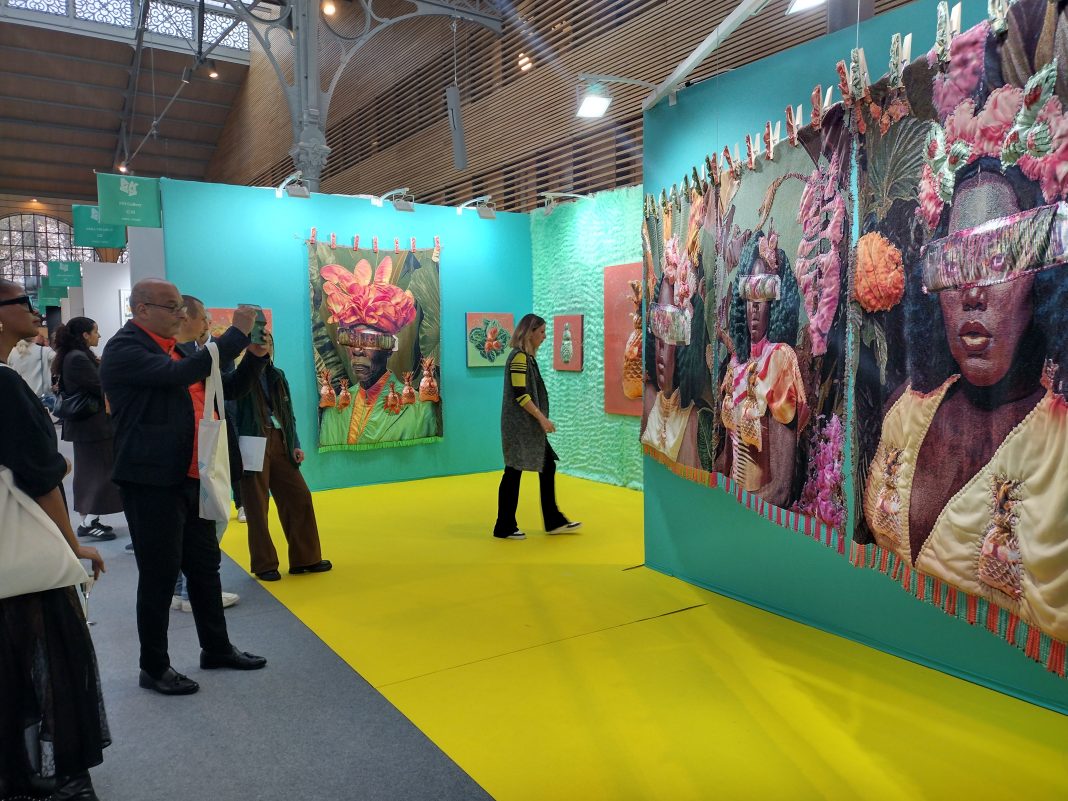 Also Known As Africa (AKAA), la principale fiera d’arte contemporanea e design dedicata alle scene artistiche dell’Africa e delle sue diaspore, accoglie au Carreau du Temple 37 gallerie, un’installazione monumentale dell’artista Cosmo Whyte esposta nel cuore dell’evento, ma anche diversi progetti speciali come Talents237, un percorso curato da Carine Djuidje, con otto giovani e talentuosi artisti della creazione camerunese contemporanea. Molti i lavori interessanti, vedi quelli tessili di Abdoulaye Konaté presso la milanese Primo Marella. Le opere vanno dai 30mila ai 50mila euro. C’è anche la parigina 193 gallery con l’artista April Bey, e la sua opera sfavillante, cioè I Grew It Myself and It Was a Brilliant Blue (tessuti jacquard, tessuto cucito a mano, 2022).