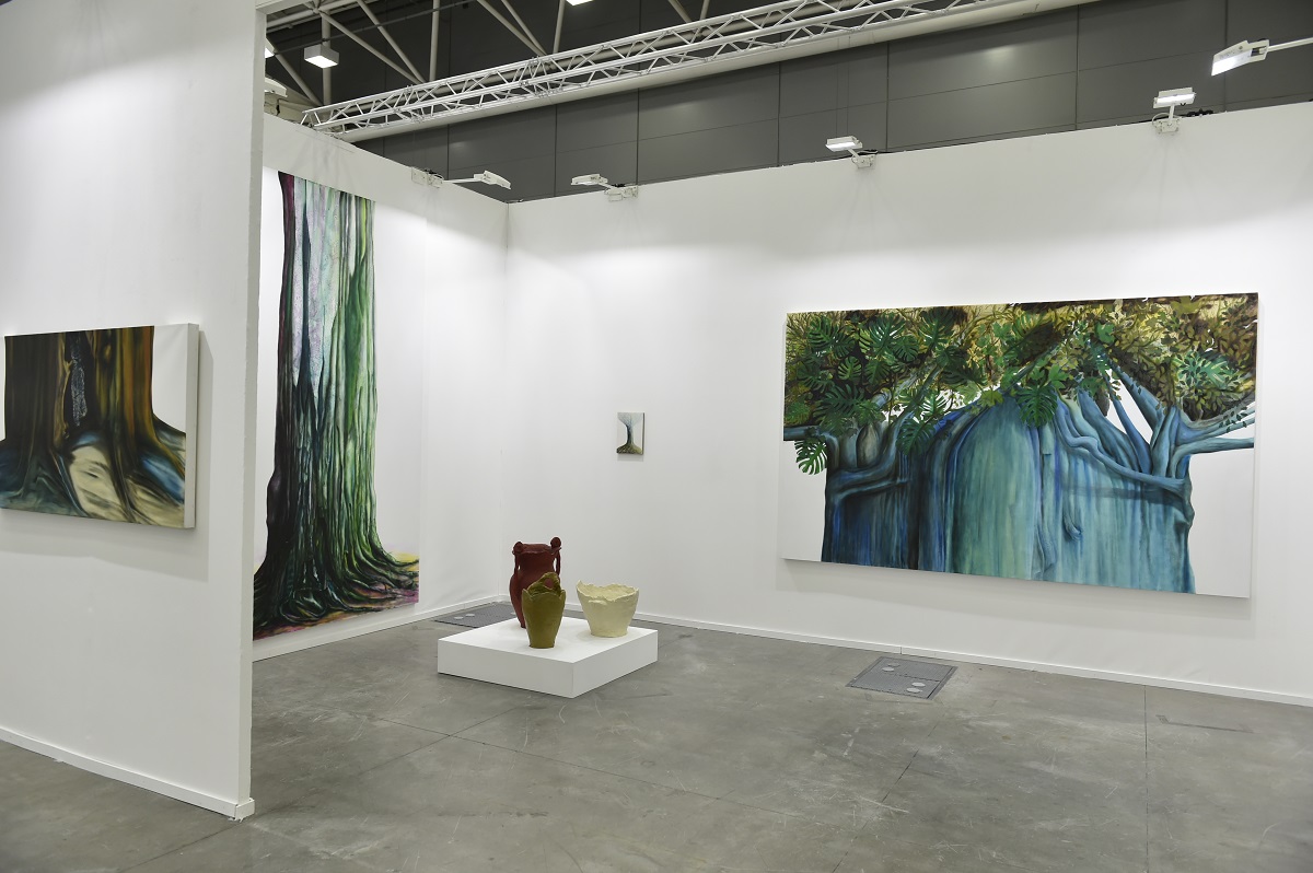 «Riconosciuta l’alta qualità generale dei lavori presenti nella sezione pittura XXI, la giuria ha selezionato Andrea Barzaghi per la capacità di portare avanti una coerente indagine e riflessione sulla pittura e la sua storia e, al contempo, di saperla adattare alle problematiche della contemporaneità», così la giuria, composta da Roberta Faraotti, Damiano Gullì e Marianna Vecellio, ha annunciato il vincitore del Premio Osvaldo Licini by Fainplast. Presentato con una personale dalla galleria Lunetta11 (Cuneo) nella sezione tematica Pittura XXI, «Barzaghi arriva a stravolgere lo stesso mezzo pittorico operando passaggi dalla bi alla tridimensionalità. Ne deriva una pittura “espansa” con la quale l’artista instaura un rapporto più libero e sperimentale, generativo di nuove potenzialità espressive. La figurazione di Barzaghi non è impositiva, non teme di confrontarsi con il grottesco e l’altro da sé, anzi si pone come un tentativo di sintesi della ricerca dello sconosciuto nell’umano».