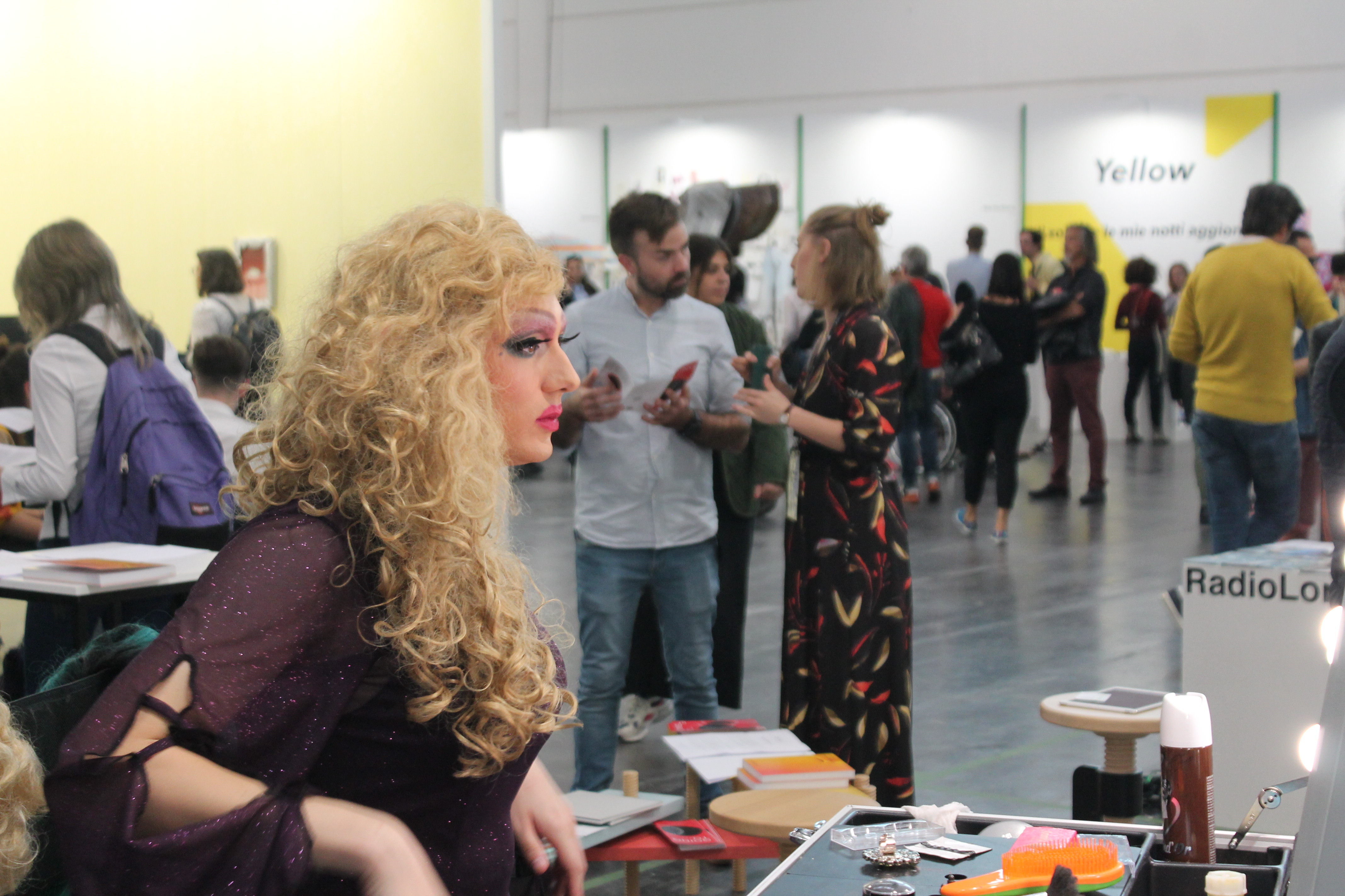 Tra le performance da segnalare nella giornata di oggi ad ArtVerona quella proposta dal collettivo CampoBase, nella sezione i10 – Spazi indipendenti: Rivolta, un progetto di Davide La Montagna e Giulia Crispiani con la partecipazione di Gianmarco Marabini che nell’arco di quattro ore ha operato in pubblico la propria “trasformazione” nella drag queen Kaya Mignonne, mentre un audio realizzato da Giulia Crispiani accompagnava lo svolgimento dell’azione fino alla sua dissoluzione. «Nel proporre la costruzione del sé come un’operazione volontaria, regolata dall’esercizio del proprio desiderio, Rivolta mette in scena il tempo per abitare se stessi, l’unico territorio che si possiede e da cui partire. Rivolta è la preparazione prima dello spettacolo, prima della consegna, prima della release. Rivolta è un atto di rilascio, un incontro, un gesto di avvicinamento, una dichiarazione», ha spiegato CampoBase.