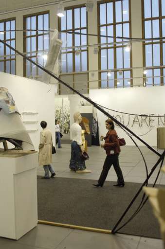 Barbara Thumm appende confusamente. Ha già venduto What millions of euros cannot make up for di Elke Krystufek; c’è un paesaggio di Julian Opie della personale vista in galleria alla fine del 2004 e un ingombrante School di Sabine Hornig. Mehdi Chouakri propone suolo e pareti dai colori acidissimi e piccoli pezzi fra il kitsch ed il design rivisitato (Sylivie Fleury e Hans-Peter Feldmann fra gli altri). Non è l’unico quest’anno a stravolgere lo stand: Klara Wallner vuole moquette e arredamento anni Sessanta per accompagnare gli enormi disegni di Sebastian Schlicher. Tutti venduti.