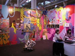 Originale la proposta della berlinese Murata & friends, dove abbiamo visto scatoline realizzate con negativi fotografici, spugnette da make up dipinte, borse di McDonald trasformate in paesaggi di carta, uno splendido kimono. Gli artisti? Quelli migliori, tutti orientali: Tatsuya Higuci, Yuken Teruya, Junya Sato. Non le è da meno Peres Projects di L.A., con un allestimento coloratissimo, i folli Asianpunkboy e un paio di pittori da tener d’occhio, Dan Attoe e Chris Ballantyne.