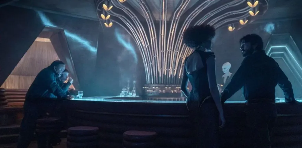 Insomma, c’è più intelligenza, umanità e poesia nel timido, affettuoso, riservato droide di Cassian che in tutti i personaggi della trilogia prequel (più quelli di Solo e Kenobi). E la cosa pazzesca è che il droide non è il solo: tutti i personaggi di Andor, persino le comparse che fanno una soffiata all’Impero o che si pentono d’averla fatta, sono veri, contraddittori, sofferenti, capaci di suscitare empatia. Personaggi bui e mozzafiato come i paesaggi notturni rischiarati da fiumi luminescenti di asteroidi, lacerati dai motori delle astronavi e dai colpi di blaster, trascinati da una trama intricata, innervata, tumultuosa, che connette ogni dettaglio, ogni politica, ogni emozione.