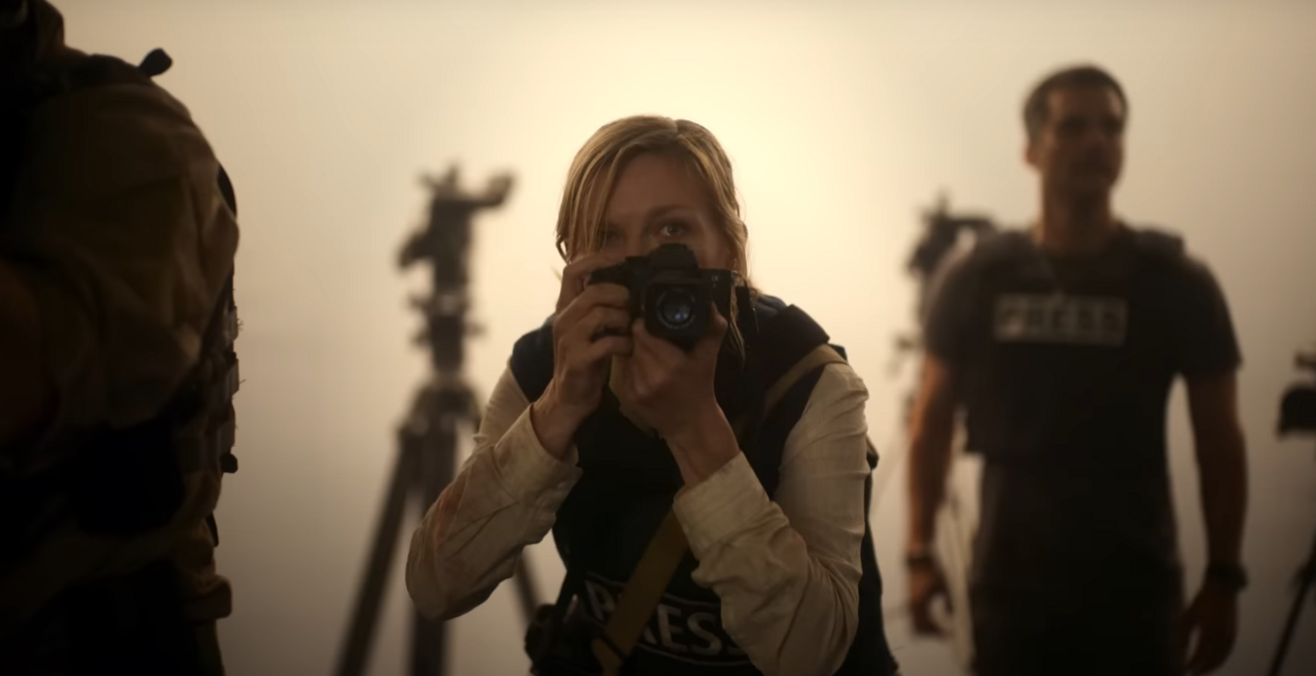 In un’America sconvolta da una guerra civile condotta dalle milizie delle Western Forces e del New Peoples Army del Nord-Ovest, cartelli dietro cui si celano la California, il Texas e la Florida, un gruppo di fotoreporter, guidato dalla celebre Lee Smith (una splendida Kirsten Dunst) e composto da Joel (Wagner Moura) e da una giovane ragazza, promessa del fotogiornalismo d’assalto, Jessie (Cailee Spaeny) decide di intraprendere il viaggio che porterà i gruppi di miliziani dritti alla conquista della Casa Bianca a Washington (in una trama sempre più House of Cards).