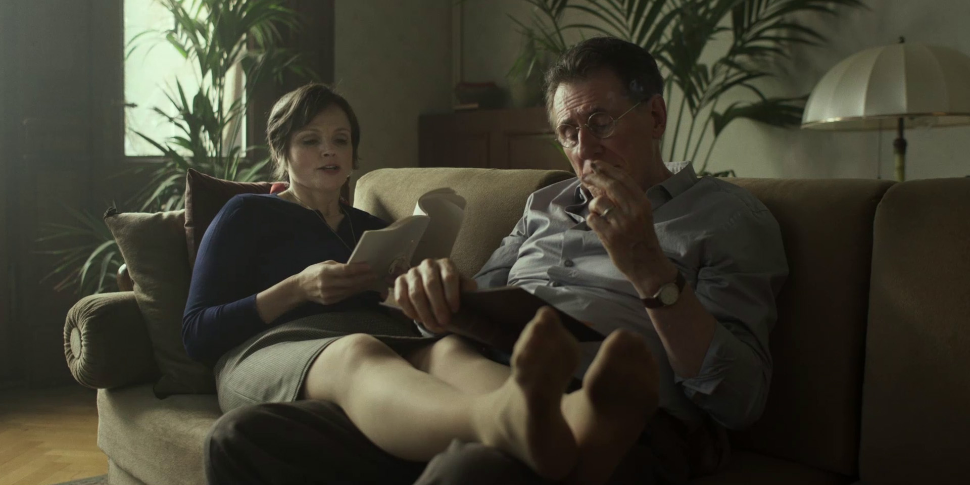 Il colloquio tra i due, interpretati dal camaleontico e magistrale Gabriel Byrne, verte su chi riceverà i soldi del premio. Seppur Beckett non sia mai andato a Stoccolma a ritirare quel premio – e donò il denaro al Trinity College di Dublino dove aveva studiato e insegnato -, risulta un divertente espediente dello sceneggiatore Neil Forsyth per riflettere sul tormento del senso di colpa che ha colpito lo scrittore lungo tutta la sua esistenza. Alla madre, la severa donna che l’ha cresciuto e sempre criticato? A Lucia, la figlia del suo maestro e amico James Joyce (interpretato da un ironico Aidan Gillen), che amava ballare e poi finita in manicomio, forse proprio a causa sua? Alla compagna di una vita Suzanne (interpretata dalla talentuosa Sandrine Bonnaire), che ha creduto in lui quando lui stesso voleva smettere di scrivere, ma che Beckett ha cinicamente tradito? A Barbara Bray (Maxine Peake) giornalista della BBC diventata amante dello scrittore drammaturgo, ma alla fine rimasta sola?