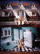 Laurea in Semiotica presso l’Università di Bologna con la tesi “Semiotica del colore, il blu” (1986) Elena Arzuffi ricrea linguaggi artistici mutuati dalle sue esperienze come computer grafica. Dopo una serie di esposizioni l’artista ha realizzato la sua prima personale in rete, in “Blackmaria” (Project Room della galleria Maria Cilena), all’indirizzo www.blackmaria.net in ActiveWorlds CHELSEA@20S 4 E facing N. I suoi ambienti visivi utilizzano due livelli di ricerca; le immagini, sempre in coppia, sono poste in continuità ed in opposizione narrativa, mostrando relazioni irrelate tra un interno ed un esterno, un dentro e un fuori. Panorami lucidi, surreali e virtuali, fanno da contrappunto a personaggi tridimensionali che interagiscono visivamente con scenografie televisive, scene filmiche e cartoni animati. L’esterno è ciò che si vede, uno sguardo sulle forme esteriori, l’interno sono i congelamenti operati dalle fotografie e i movimenti che attraversano i due video – Casa di bambola e Abitudini solitudini. Proiettati in sequenza continua su un piccolo schermo TV sono racconti a sé stanti della durata di circa 3/5 minuti. Elena Arzuffi affida la realizzazione del montaggio a un professionista, Walter Papini, mentre gli sfondi sonori sono musiche di Mendelson – Bartoldi e Prince. Ripresi in telecamera digitale – questo mezzo permette, fra l’altro, di girare vedendo il lavoro finito – traducono immagini trasparenti, particolarmente nitide, colori vivaci e visioni iperrealiste. Tra le specificità del nuovo strumento, rispetto ai risultati delle altre camere, l’assenza di grana. Il digitale non utilizza i tradizionali supporti, quindi è come poter lavorare con una seconda pellicola (color corrector) in real time. Così notevolmente amplificate le possibilità creative, E. Arzuffi ambienta le sue storie utilizzando movimenti lentissimi in spazi simili a video-giochi. Sono immagini che attraversano le ripetizioni degli atti quotidiani, le abitudini, raccontando il vuoto e il pieno del vivere.