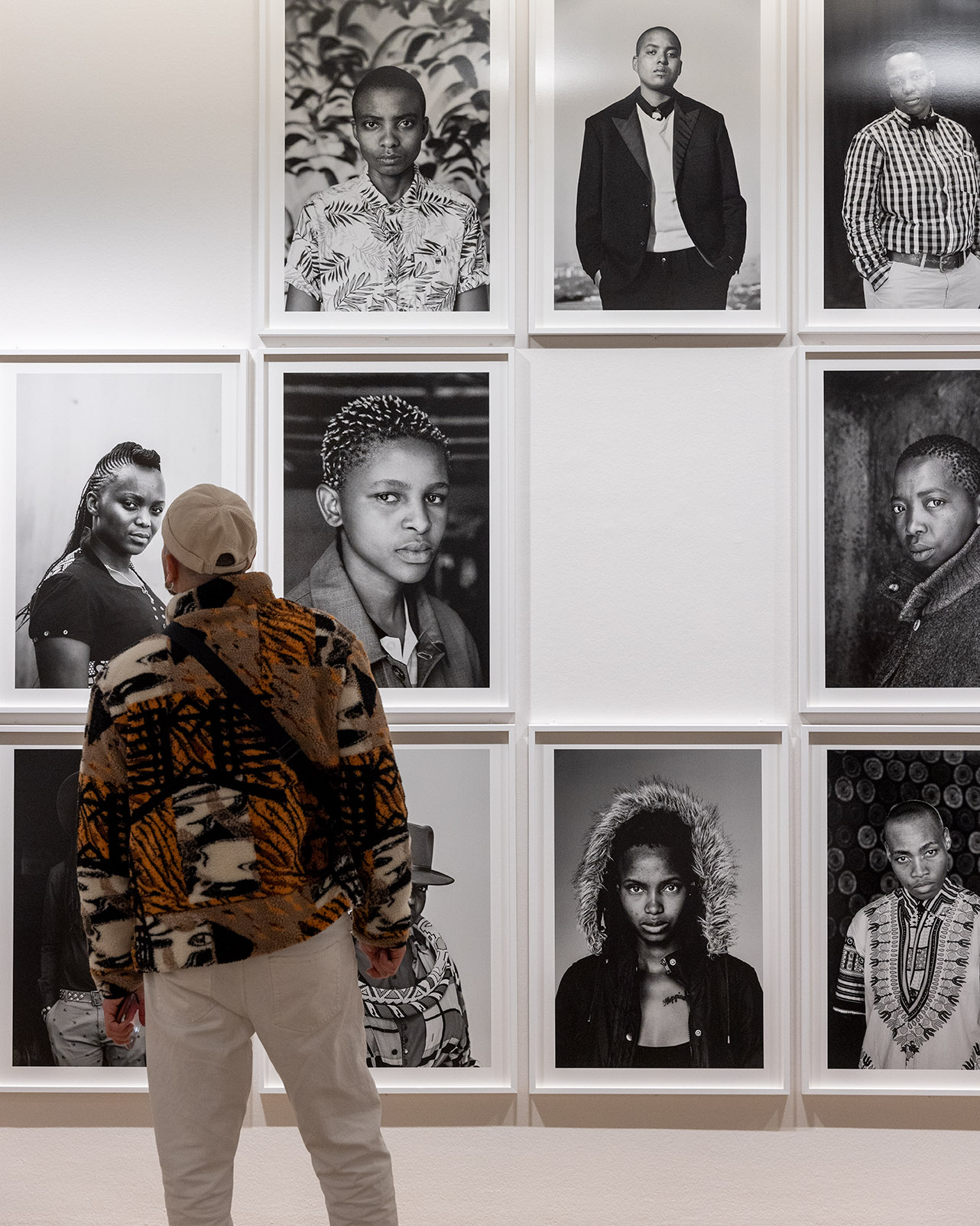 Il percorso espositivo? Miriade di volti colti frontalmente e con fondi dalle texture molteplici si affacciano da cornici regolari di diversi formati. Vite spezzate, ricostruite e certo coraggiose, individuali o collettive, queste sono documentate senza fronzoli attraverso foto in bianco e nero, talvolta a colori, e per lo più stampate alla gelatina d’argento. Muholi interroga l’inclusività, la storia del colonialismo e le discriminazioni derivanti, ci parla di amicizia e d’amore come nella serie Being (2006 in corso). Puntando l’obiettivo contro le ingiustizie restituisce con dignità le persone che immortala e che lei definisce “partecipanti attivi all’opera”.