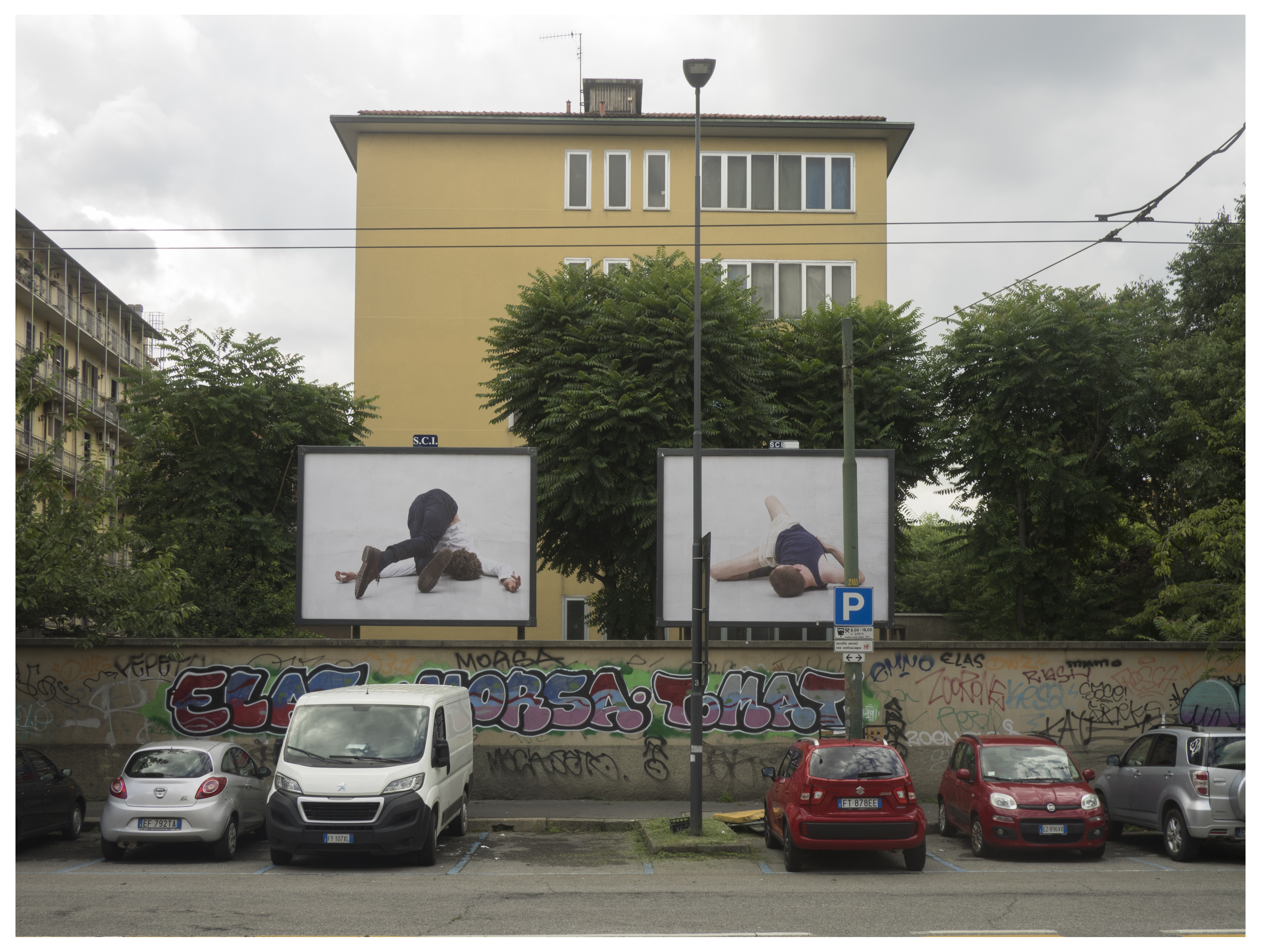 «Io e Alessio Bolzoni ci conosciamo e ci confrontiamo da tempo, uniti da un comune sentire e affetto. Viviamo più o meno la stessa attrazione per la liminarità del corpo, per la sua compenetrazione tra Leib e Körper, per la sua rappresentazione e autorialità. Il Billboard Project è nato proprio da questo assunto. L’alienazione del corpo, la sua forzata distanza dall’Altro assieme alla sua improvvisa rischiosità sono stati gli elementi che ci hanno fatto riflettere su un intervento pubblico, appena le condizioni sanitarie e pubbliche lo avrebbero consentito. Oltre al fatto che sia io che Alessio non abbiamo vissuto la quarantena come uno spazio di sospensione ma di attività teorica e progettuale. Inoltre abbiamo voluto fare un omaggio a Milano, città che entrambi adoriamo e che è stata fortemente colpita dalla pandemia ma sulla quale scommettiamo il suo riscatto. Il billboard come spazio relazionale urbano, diffuso e incondizionato è la strategia potente che l’opera d’arte può ritagliarsi. Io ho sempre amato la sua intrusione nello spazio cittadino, da Felix Gonzalez Torres in poi. Per me è uno spazio di guerrilla intellettuale. Da parte di Alessio c’era come una urgenza morale di intervenire espressivamente e da parte mia, azionando un dispositivo post-situazionista, vi era la forte esigenza di mettermi in gioco in senso civico e teorico oltre che curatoriale».