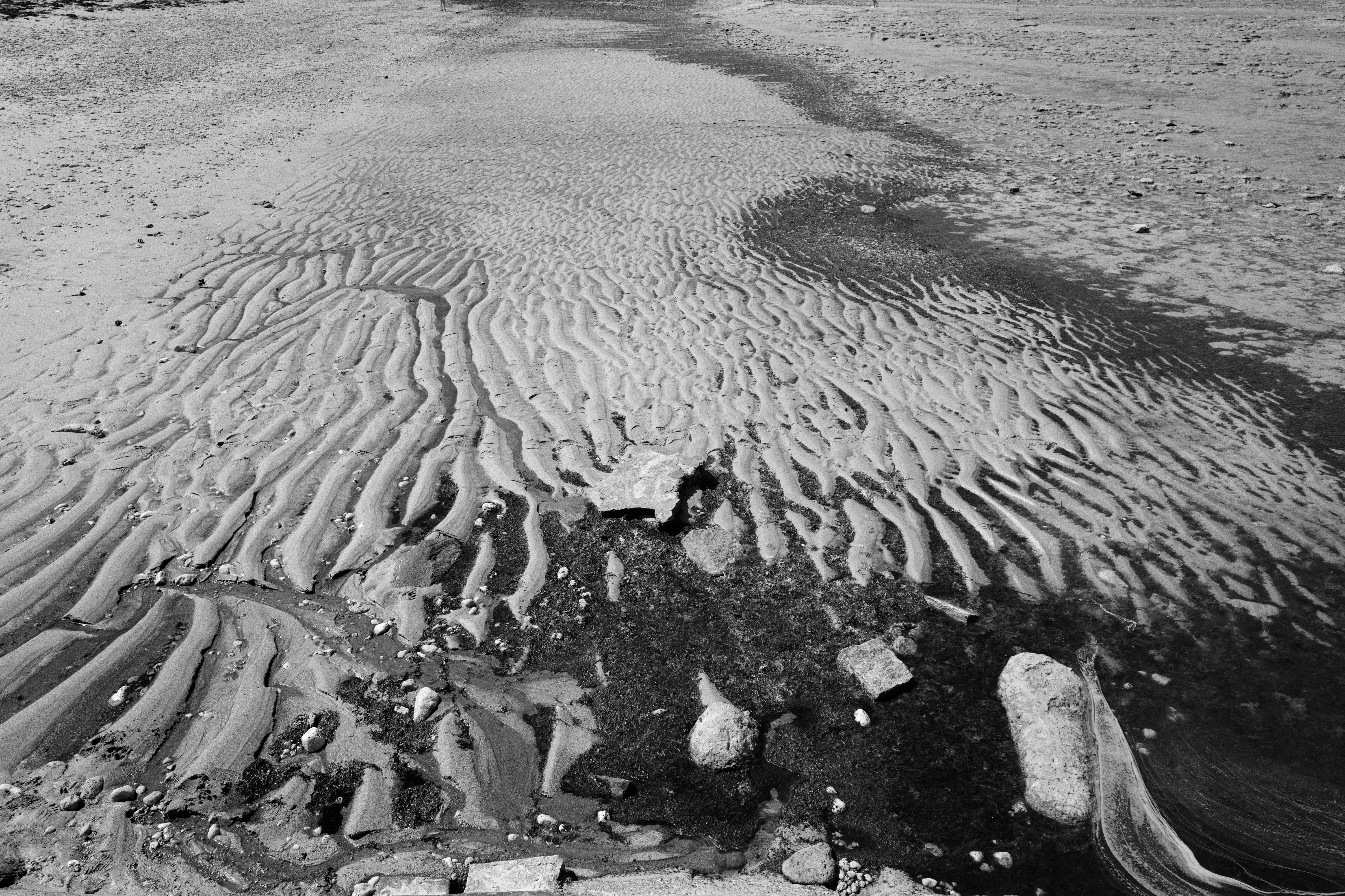 È un viaggio nel territorio della Charente Maritime ad aver ispirato la mostra fotografica Atlantique. Frammenti di un sentimento oceanico di Marco Rinaldi e Paola Setaro, fruibile presso l’Associazione TRAleVOLTE di Roma, fino al 12 aprile 2024. 25 scatti in bianco e nero e quattro occhi sovrapposti ritraggono i luoghi incontrati, non con distacco o intrusiva curiosità, quanto piuttosto con un pudico rispetto dell’istante, nudo come si presenta. Nel piano di far rientrare, in punta di piedi, ogni visione entro geometrie chiaroscurali simmetriche e al contempo spontanee. Ogni landa o scorcio cittadino immortalato galleggia, franto, sul pelo di una trama visiva variabile. E che tuttavia, quietamente, sembra volgere a una stasi almeno apparente.