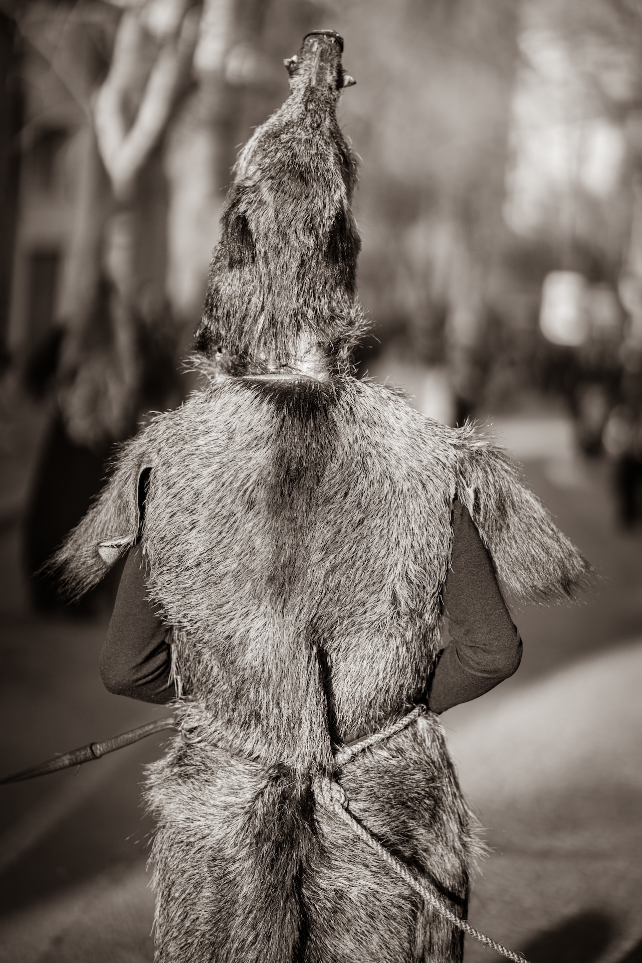 Nell’interessarsi ai riti carnevaleschi della Barbagia, Corsini intraprende un progetto di ricerca delle proprie radici, in una zona identitaria liminare tra sguardo interno ed esterno all’isola. Oscillando tra la consapevolezza delle proprie origini toscane e milanesi, l’attaccamento alla terra che l’ha visto crescere e l’arricchimento che gli proviene dalle esperienze di vita all’estero, Corsini ha scelto di indagare i riti di paesi quali Mamoiada, Orotelli, Ottana, Gairo, Orani, Neoneli, Austis, Ovodda, Olzai, Ortueri e Sorgono. Momenti legati a creazioni identitarie profondamente radicate nelle comunità, nonché suggestive per gli assetati occhi esterni alle realtà barbaricine: la collettività trova in queste manifestazioni degli interstizi sociali, lontani dai ritmi della quotidianità contemporanea e allo stesso tempo figli proprio della necessità, più che mai attuale, di ritrovare spazi differenti di ritualità e relazionalità.