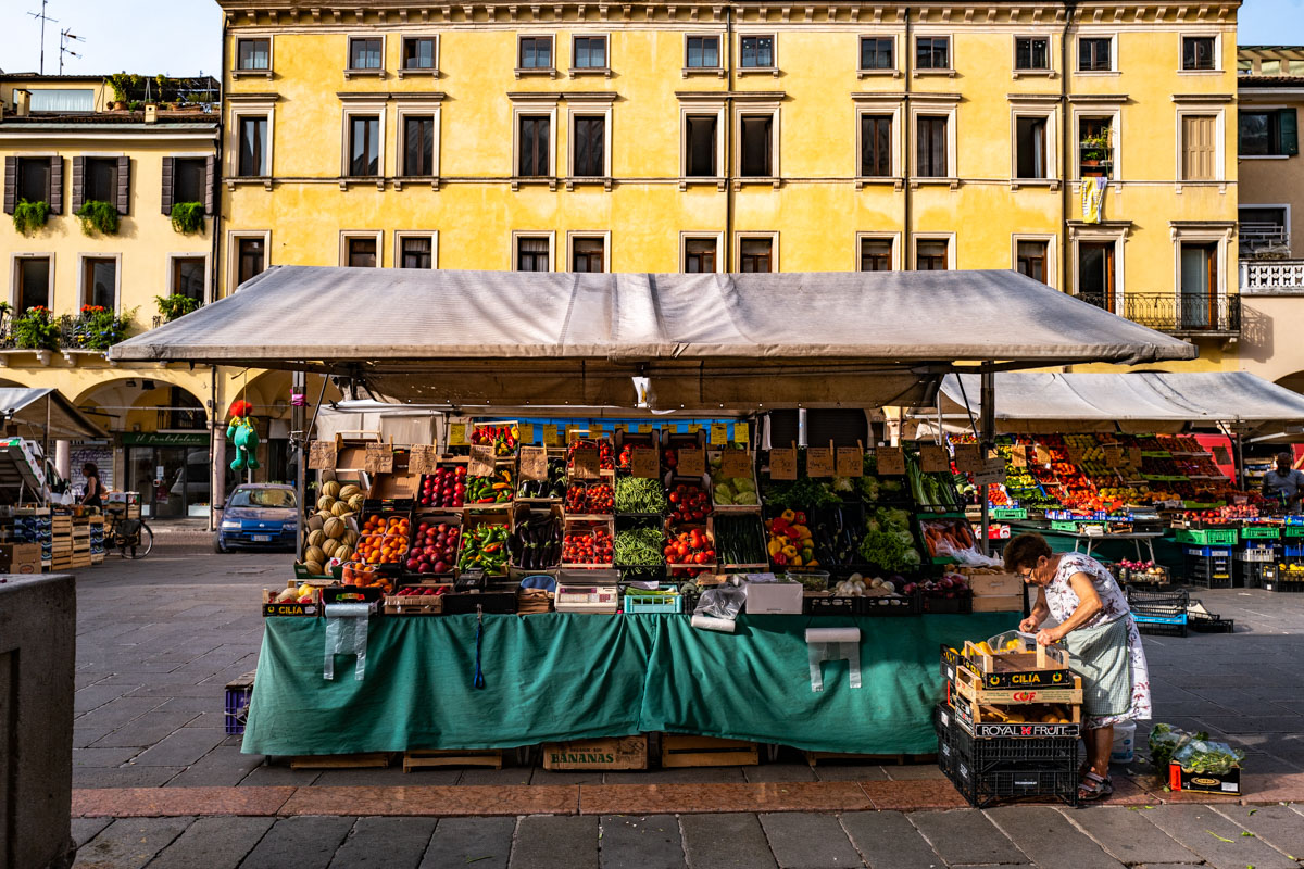 «Quando vedo una fotografia di Francesca Magnani, cerco la gente», scrive la critica Julie Lasky nella presentazione della mostra. «Il più delle volte le persone riempiono l’inquadratura: figure intense e consapevoli, piene dei colori vividi degli incontri in strada, si rivolgono all’occhio della macchina fotografica con un gran sorriso o vengono magari catturate mentre assistono a uno spettacolo non di loro creazione: un corteo nuziale, una manifestazione Black Lives Matter, l’accensione delle luci che delineano i cavi del ponte di Brooklyn come una collana di perle, mentre il sole tramonta sulla baia di New York», continua Lasky, facendo riferimento anche ai tanti lavori incentrati sulla metropoli statunitense (che abbiamo anche pubblicato in varie occasioni) e a una certa corrispondenza. «La sua nuova mostra rappresenta un ritorno a casa in più di una maniera. Sono passati cinque anni da quando Magnani, che vive a New York dal 1997, è tornata nella nativa Padova. Ci mostra venditori di frutta e verdura che brilla come a gioielli, esperti esponenti dell’agitata vita politica nazionale, amanti distratti e turisti che attraversano la storica piazza, immigrati in transito in stazione, in bilico tra i mondi. È a migliaia di chilometri da New York e i soggetti sono gli stessi».