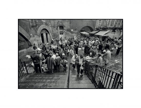 Sottsass cominciò a scattare foto quando ancora era ragazzo e non ha mai più smesso, anche se questo aspetto è poco noto. “Ero orribilmente curioso”, aveva dichiarato lui stesso. Fotografare era un modo per “fermare” la vita oltre che un mezzo per documentarla. Il Barocco, il mercato del pesce, le strade, le scene di vita quotidiana: Catania Mia! racconta, attraverso vari fotogrammi della città, una Catania vitale.