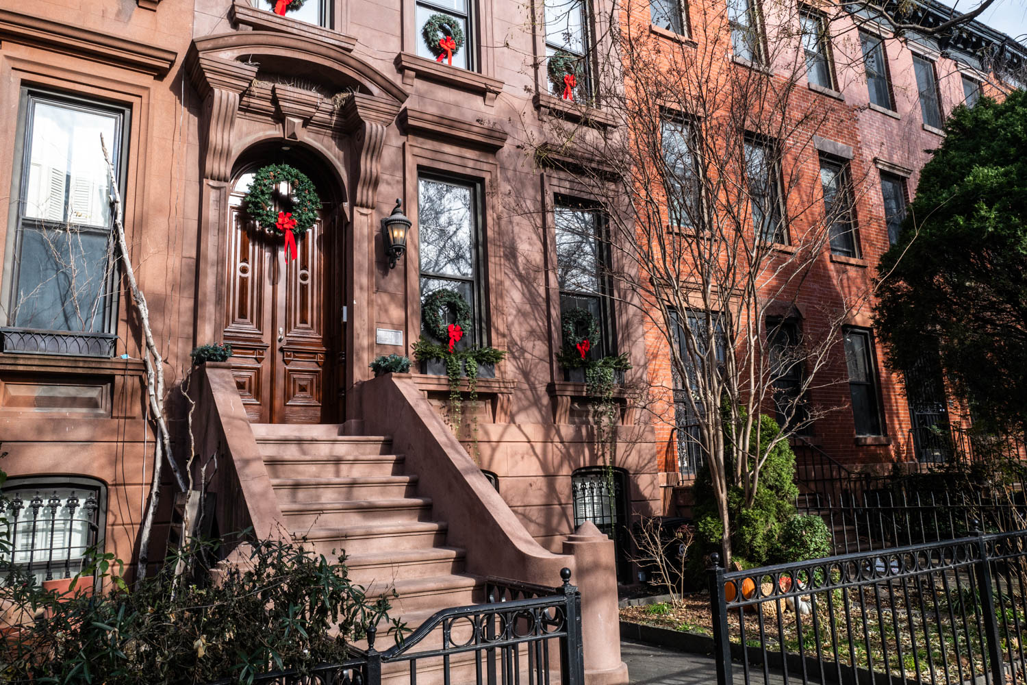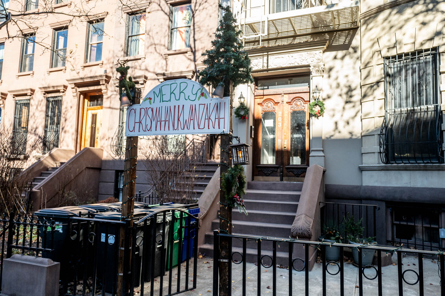 Continua il nostro giro a New York, immersi nell’atmosfera natalizia. Questa volta siamo a Brooklyn: tra ghirlande sulla porta d’ingresso, pupazzi di neve gonfiabili agli incroci, fiocchi rossi alle finestre e luminarie in giardino, attraversiamo il quartiere di Prospect Heights. Le decorazioni qui non riguardano solo il Natale ma anche la celebrazione ebraica Hanukkah (14 – 22 dicembre) e quella afroamericana Kwanzaa (26 dicembre – 1 gennaio).