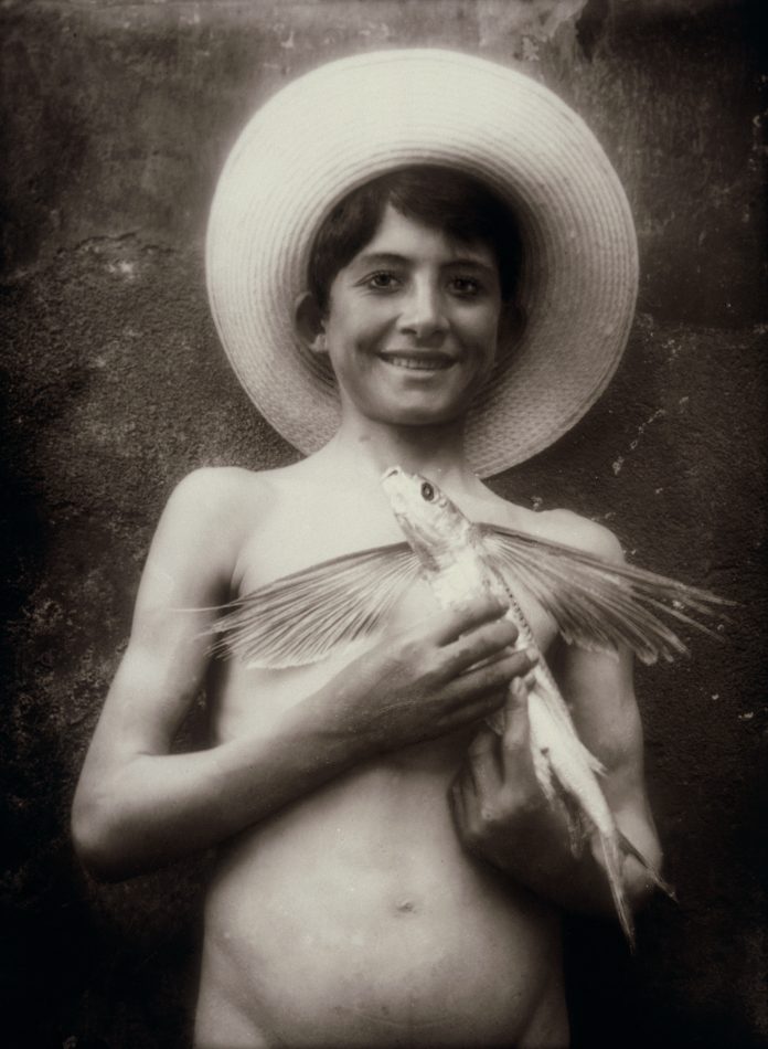 Ne La stanza dei ragazzi tale leggerezza appartiene ai corpi, alle loro espressioni e alle posture dei soggetti. Sono ragazzi giovani scelti da Wilhelm von Gloeden (1856) per creare una dimensione altra all’interno dei suoi lavori ambientati nelle estati siciliane invase da lascivi protagonisti. Un luce sempre calda e avvolgente, atmosfere idilliache e sopite fanno pensare a un passato di ozio e vacuità, oggi probabilmente anche solo impossibile da contemplare.