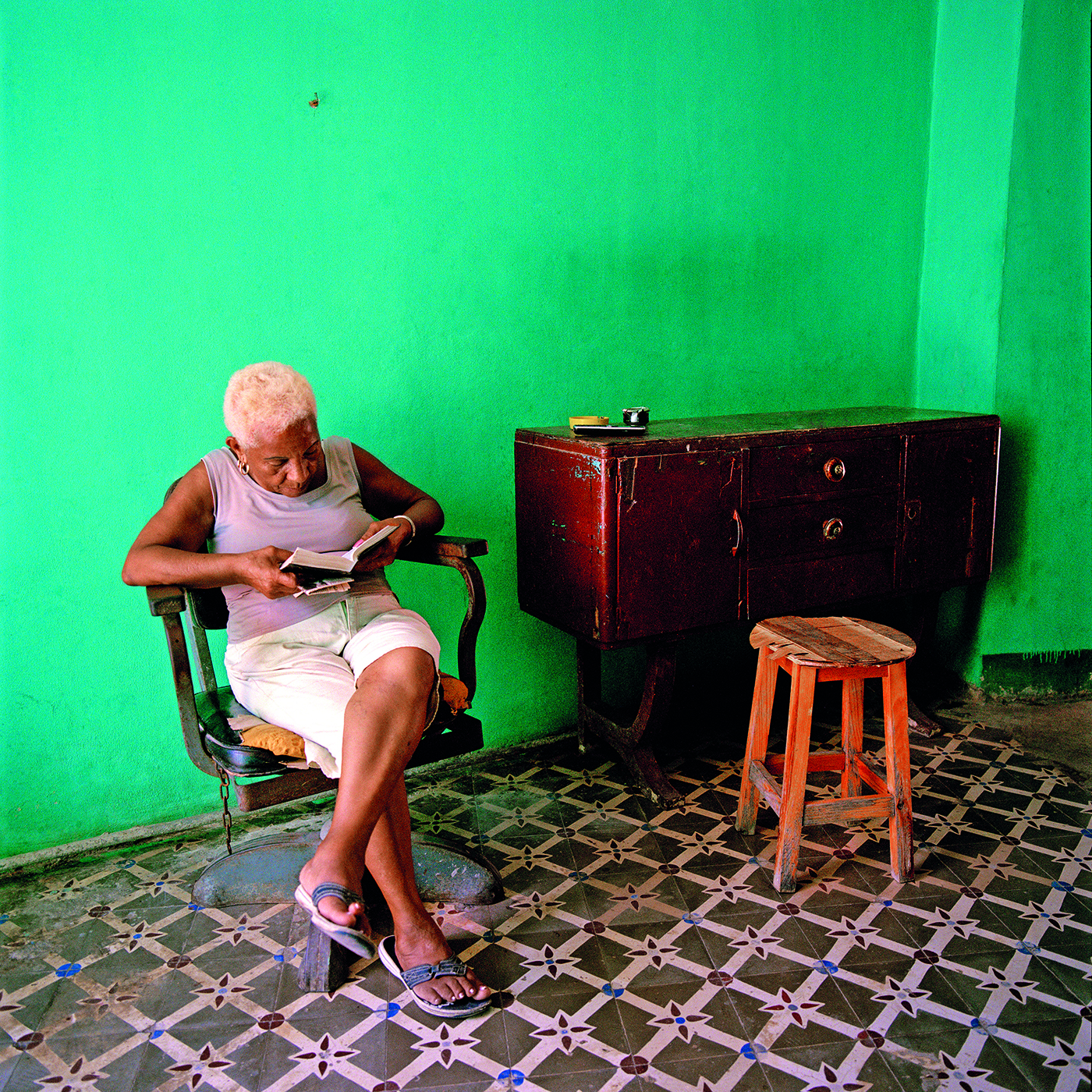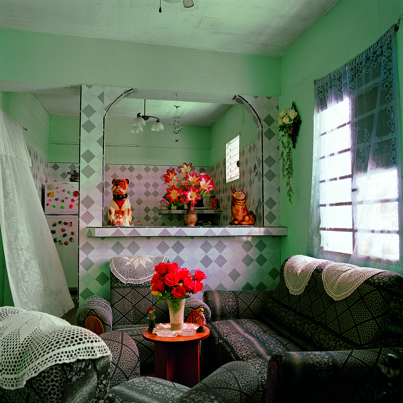 Ritrovo Magda e i suoi ninnoli, di nuovo a La Habana, il suo essere strabordante, eccessiva, e le sue frasi amare dette con allegria: “Sono pazza, l’unico modo per poter vivere qui” e José, il nostro oste a Cardénas scovato per caso – perché l’albergo prenotato non esisteva – con la sua casa ultra-kitsch, arredata secondo i più classici canoni del “Vizietto” europeo e nord-americano: vecchi orologi, poltrone comprate nei “supermercati” di stato, bomboniere, stampe, quadretti piccoli e grandi di rara bruttezza a fare il quadro perfetto con mattonelle di ceramica con stampe di prati e fiori, o quadrotti neri e porpora, degni di stanze di motel per vecchie puttane ingioiellate di bigiotteria e profumi dozzinali e grassi.
