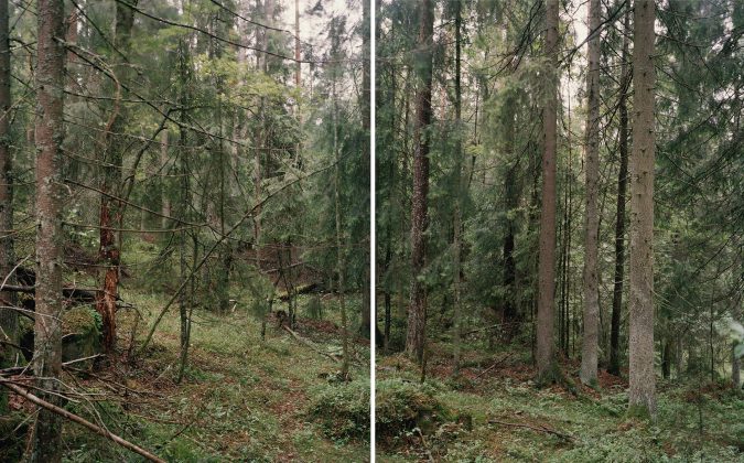 giustappone immagini di intricati sistemi naturali e artificiali come foreste di conifere, scorci di cantiere e nuove urbanizzazioni.