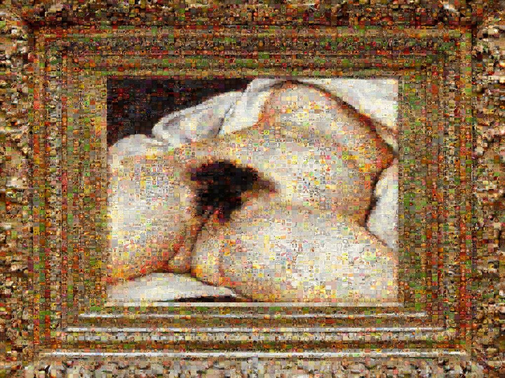 «Si tratta della tecnica del fotomosaico, inventata nel 1996 da uno studente MIT in occasione del suo diploma. L’idea è che il mosaico è fatto da altri lavori presi da internet: la corretta immagine ha esattamente lo stesso colore che costituisce un frammento dell’opera. Per fare ciò si impiegano alcune ore, perché il lavoro secondario deve esattamente sostituire una parte dell’opera. Questo lavoro può essere una pubblica risorsa per artisti, come nel caso di Gibellina Photoroad»