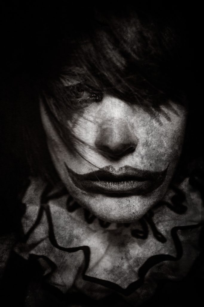 facile comprendere che per il progetto artistico Clownville, abbia cercato una strada totalmente sovversiva. In grado e di liberare e trascendere ogni possibile limite e fare del soggetto fotografato un materiale simile alla plastilina. Muoversi nel regno della messa in scena, della commedia dell’arte. Passando dal fumetto alla psichiatria , dalla letteratura, tra Pirandello e Stephen King, alla cinematografia iconica di Chaplin fino a Batman e Joker.