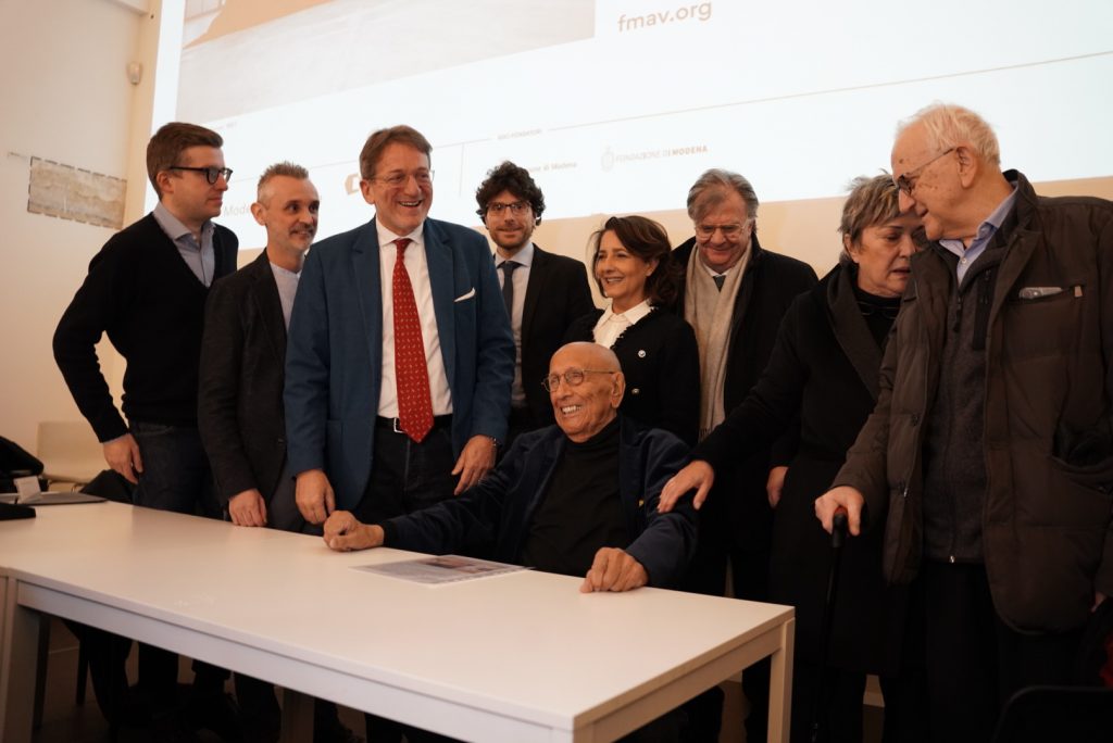 Si è svolto il 9 dicembre 2023 presso AGO Modena Fabbriche Culturali l’incontro FRANCO90 per festeggiare i novant’anni del celebre fotografo modenese Franco Fontana. Ad introdurre l’evento, partecipato da amici e ammiratori, la presidente di FMAV Fondazione Modena Arti Visive e di Fondazione AGO Donatella Pieri, il sindaco della città Gian Carlo Muzzarelli, il Rettore di Unimore Università degli studi di Modena e Reggio Emilia Carlo Adolfo Porro, e Massimiliano Morini, Consigliere di Amministrazione di Fondazione di Modena. Fontana, figura cardine della fotografia internazionale, si racconta a Nicolas Ballario, offrendo uno scorcio sulla sua infanzia e i primi passi nel mondo della fotografia, fino ad arrivare a riflessioni sulla tecnica fotografica e sull’importanza dell’identità d’autore.
