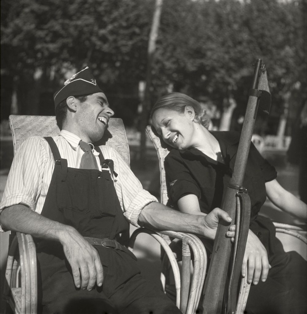 L’immagine è di fortissimo impatto. Profondamente, e forse inaspettatamente attuale, quella fotografia, come altre in mostra, suggerisce una riflessione sulle donne e sul loro ruolo sia nel contesto specifico della resistenza spagnola, sia, e più in generale, sul loro modo specifico di mettersi in gioco in prima persona, nella vita, in guerra e in amore, come recita il titolo della mostra, oltre ogni cliché e osservazione banale. Oltre alle immagini iconiche, la mostra consente anche di ammirare la riproduzione di alcuni provini della famosa “valigia messicana”, data per perduta all’epoca della Seconda Guerra Mondiale e rinvenuta soltanto nel 2007, che conteneva 4.500 negativi scattati in Spagna da Robert Capa, Gerda Taro e il loro amico David Seymour, alias “Chim”.